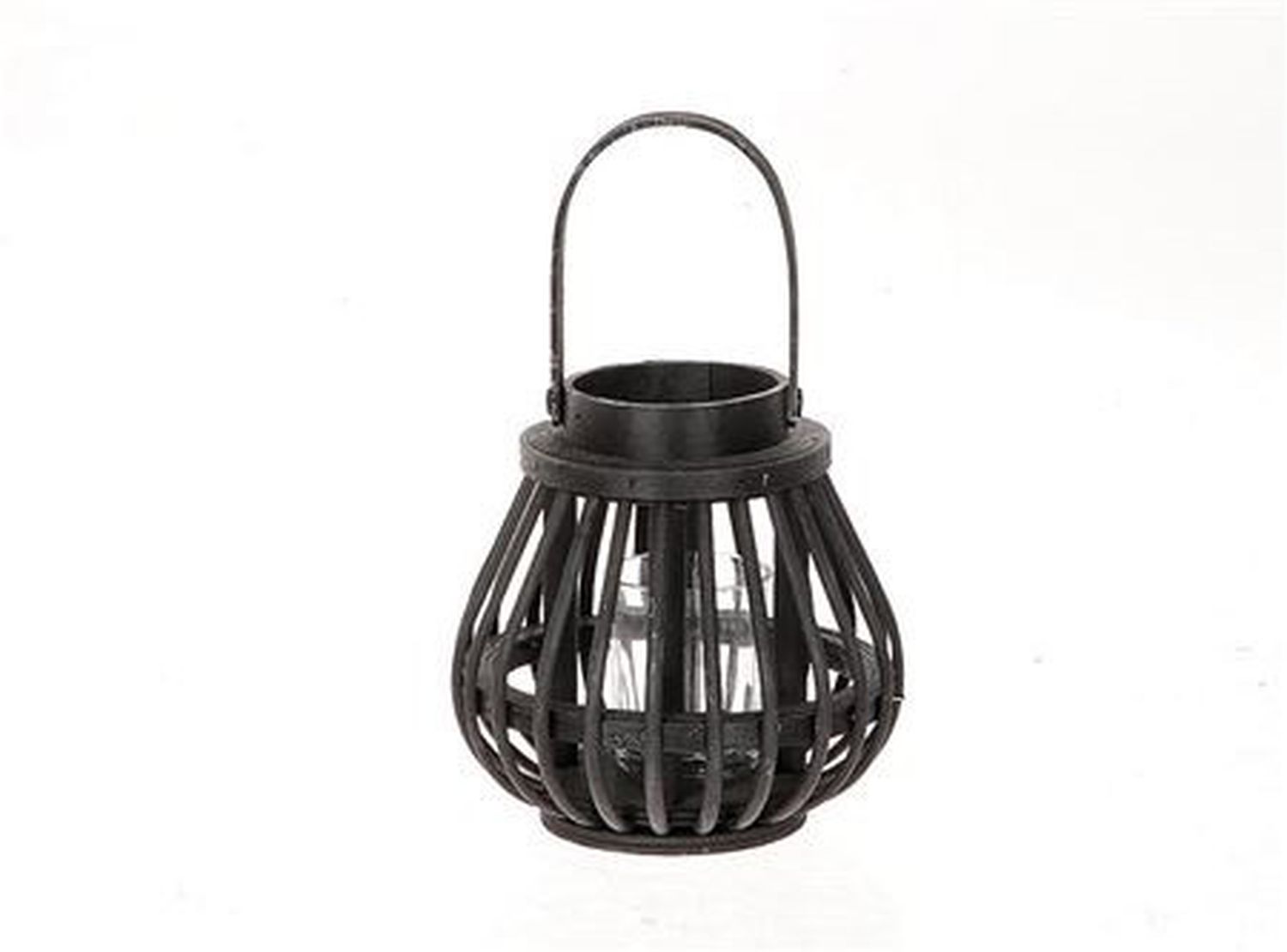 Laterne CHARITHRA mit Henkel, Holz, Glaseinsatz, schwarz, 15cm, Ø15,5cm
