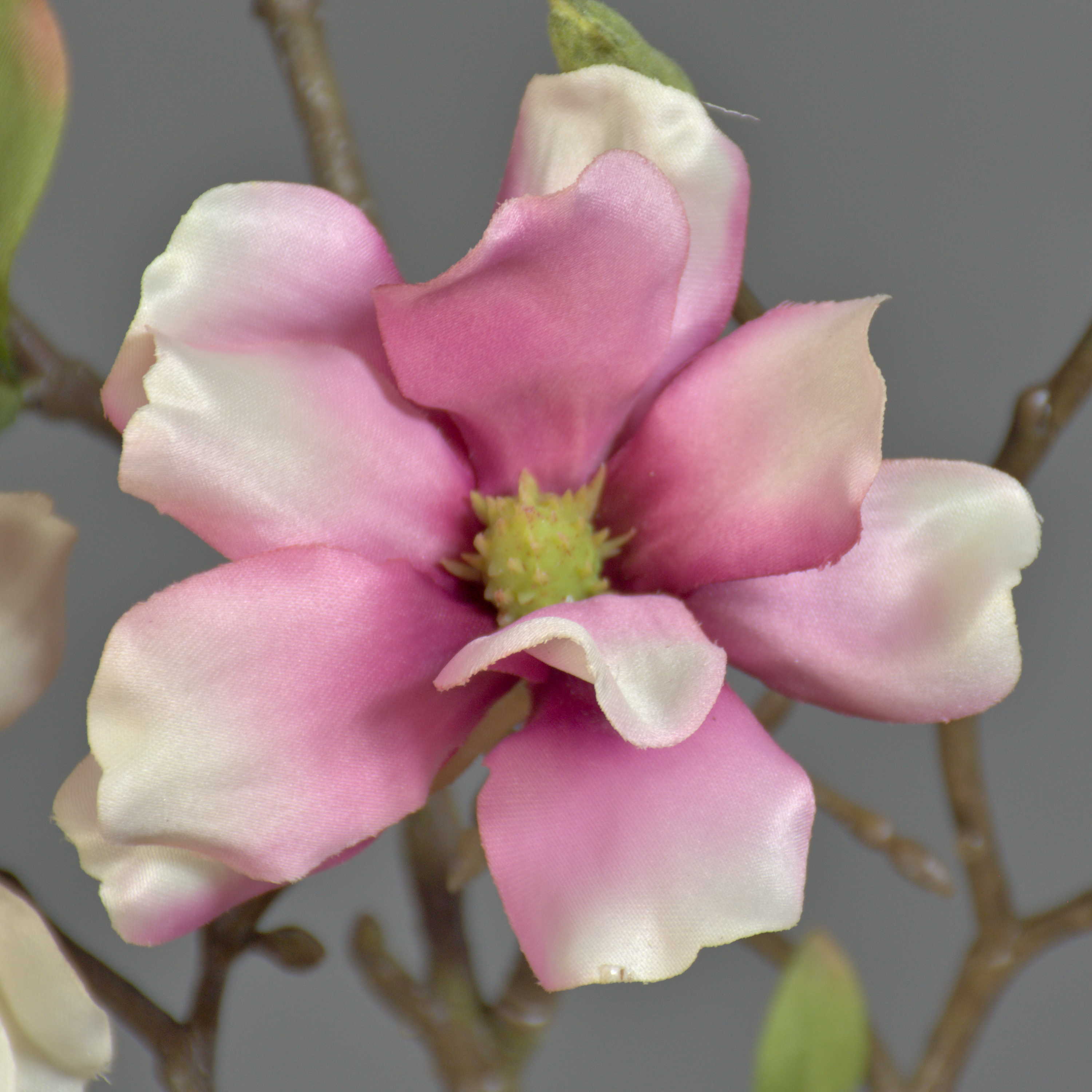 Fein gearbeiteter Magnolia Deko Zweig MARGA mit 4 Blüten und Knospen mit einer Länge von 80 cm.