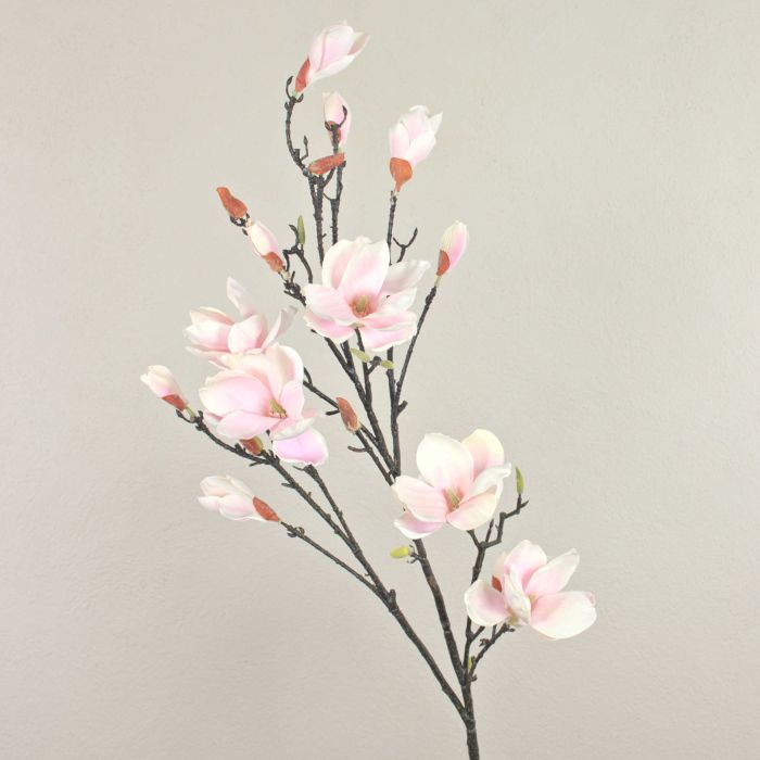 Die Textil Magnoliablüten YONA in der Farbe Weiß-Rosa mit einer Gesamthöhe von 130 cm schmückt Ihren Wohnraum stilvoll.