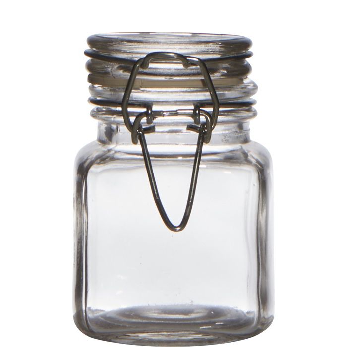Glas mit Bügelverschluss POPPY von INNA GLAS. Der transparente Glasbehälter mit den Maßen 7,5 cm; Ø 5 cm ist sowohl für Vorräte, aber auch für Marmelade bestens geeignet.