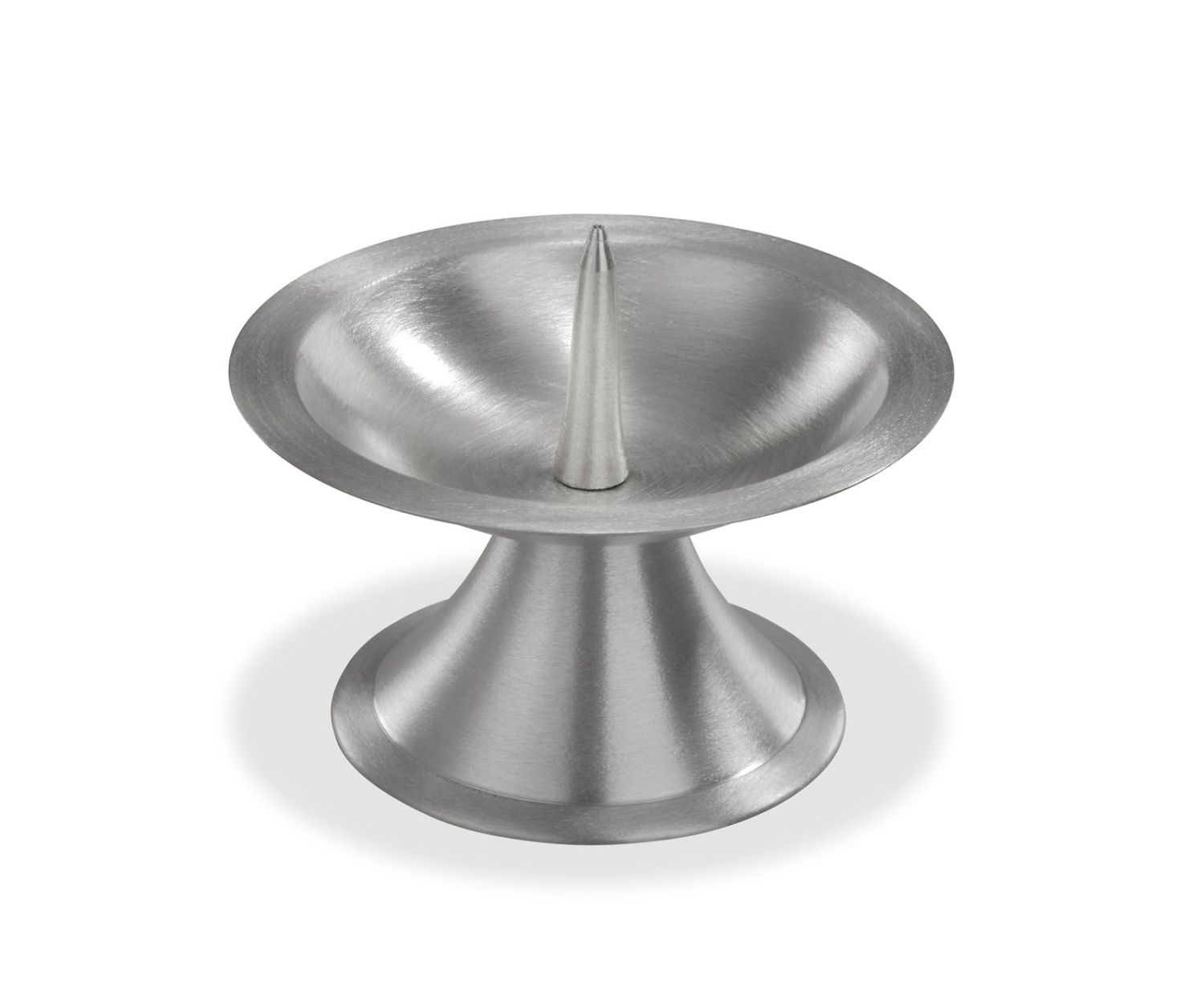 Messing Kerzenhalter OLIVERIO mit Dorn, für Kerzen Ø5-6cm, vernickelt, matt gebürstet, silber, 5cm, Ø9cm