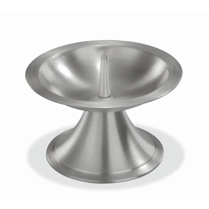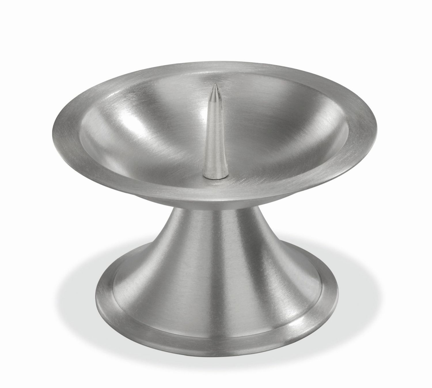 Messing Kerzenhalter OLIVERIO mit Dorn, für Kerzen Ø7-8cm, vernickelt, matt gebürstet, silber, 6,5cm, Ø11cm