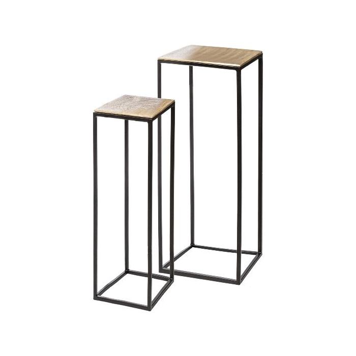 Metall Blumentisch WAKANDA, 2 Stück, schwarz-braun, 22x22x60cm, 25x25x80cm