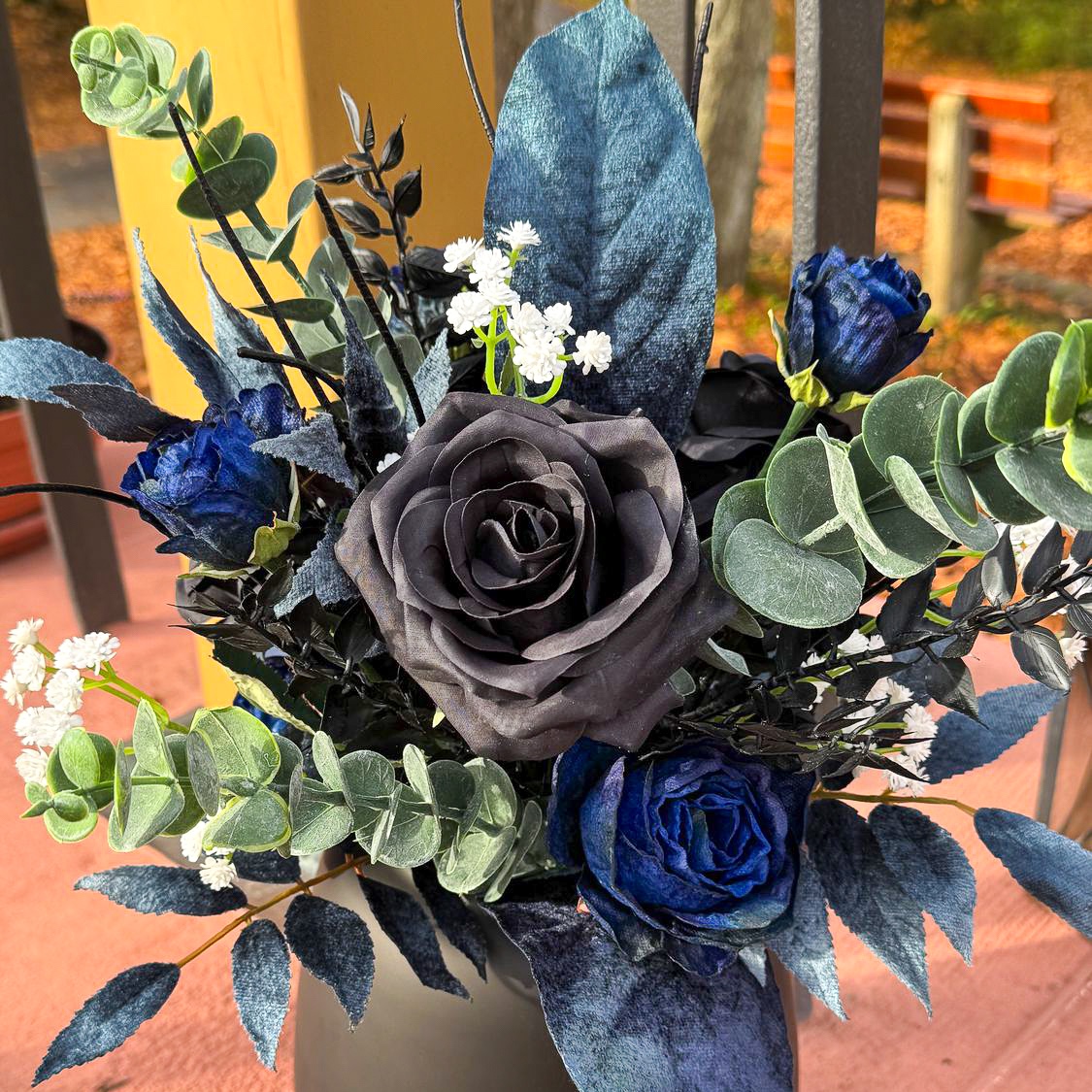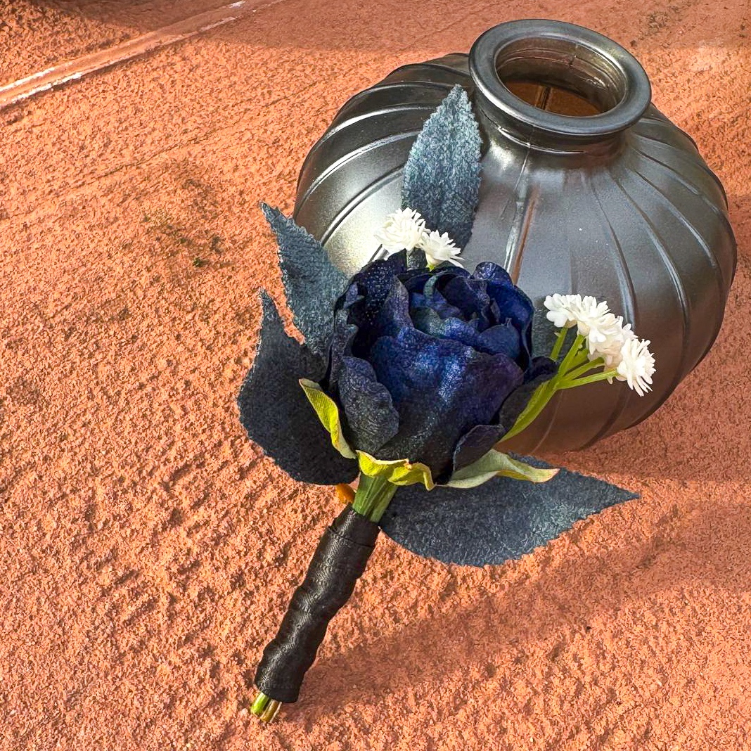 Wenn florale Kunst auf zeitlose Eleganz trifft! Für eine traumhafte Hochzeit in Südfrankreich auf einer idyllischen Halbinsel durften wir die komplette Floristik gestalten. Die Feier fand Mitte November statt – eine Zeit, in der sich Eleganz und Tiefe in der Farbgestaltung besonders wirkungsvoll entfalten. Die Kundin wünschte sich ein modernes, edles Konzept in Schwarz und Dunkelblau, ergänzt durch feine weiße Akzente für einen klassischen Hochzeitseindruck. Alle dunkelblauen Elemente erhielten eine samtige Oberfläche, die besonders in der kühleren Jahreszeit eine edle, warme Wirkung entfaltet. Der Brautstrauß und der passende Anstecker für den Bräutigam bilden das Herzstück des gesamten Floristik-Konzepts – harmonisch aufeinander abgestimmt und stilprägend für alle weiteren Arrangements. Wollen auch Sie Ihre Hochzeit mit künstlichen Blumen feiern? Shop the Look!
