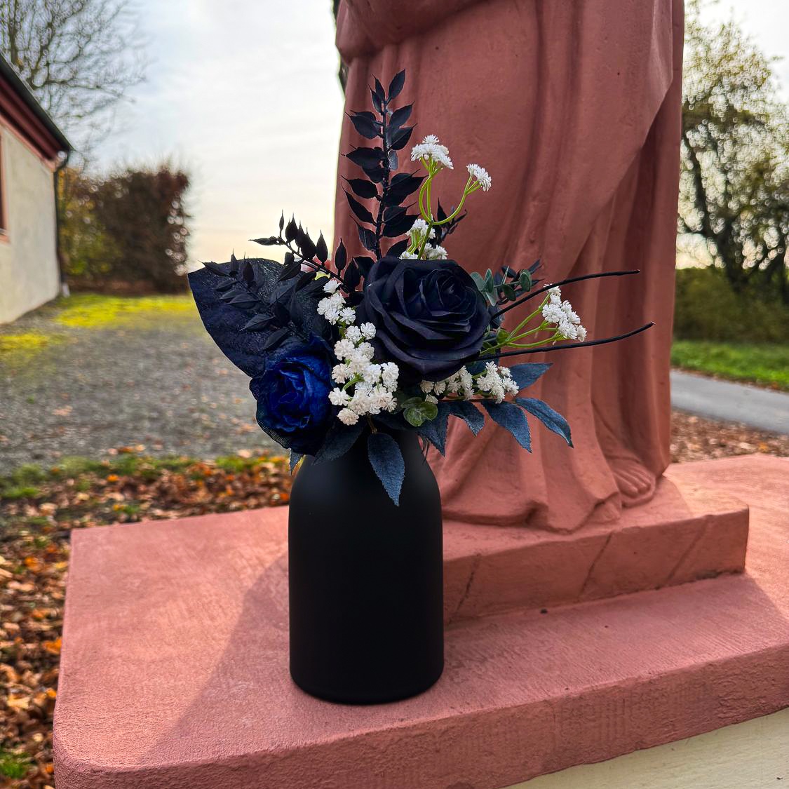 Wenn florale Kunst auf zeitlose Eleganz trifft! Für eine traumhafte Hochzeit in Südfrankreich auf einer idyllischen Halbinsel durften wir die komplette Floristik gestalten. Die Feier fand Mitte November statt – eine Zeit, in der sich Eleganz und Tiefe in der Farbgestaltung besonders wirkungsvoll entfalten. Die Kundin wünschte sich ein modernes, edles Konzept in Schwarz und Dunkelblau, ergänzt durch feine weiße Akzente für einen klassischen Hochzeitseindruck. Alle dunkelblauen Elemente erhielten eine samtige Oberfläche, die besonders in der kühleren Jahreszeit eine edle, warme Wirkung entfaltet. Als leichtere Variante des Brautstraußes wurde der Wurfstrauß im selben edlen Stil gefertigt – handlich, elegant und ideal für den symbolischen Moment des Blumenwurfs. Wollen auch Sie Ihre Hochzeit mit künstlichen Blumen feiern? Shop the Look!
