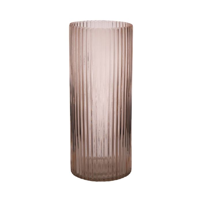 Moderne Glas Blumenvase SORCHA mit Rillen, zartrosa-klar, 30cm, Ø12,5cm