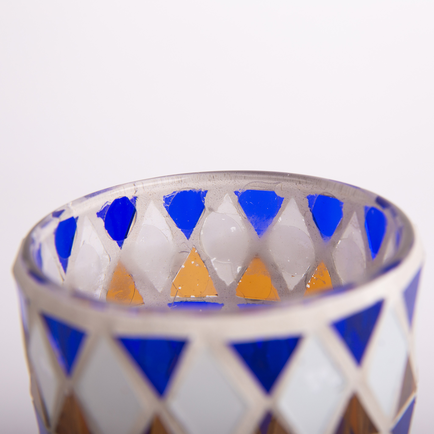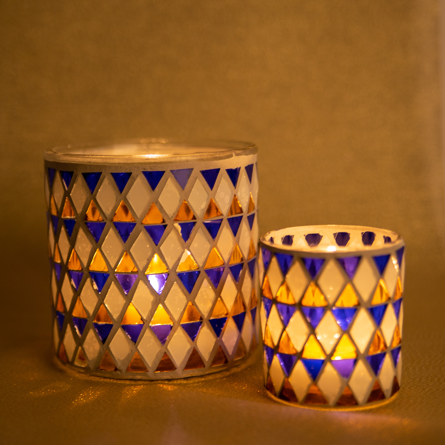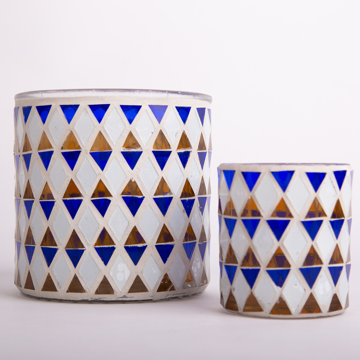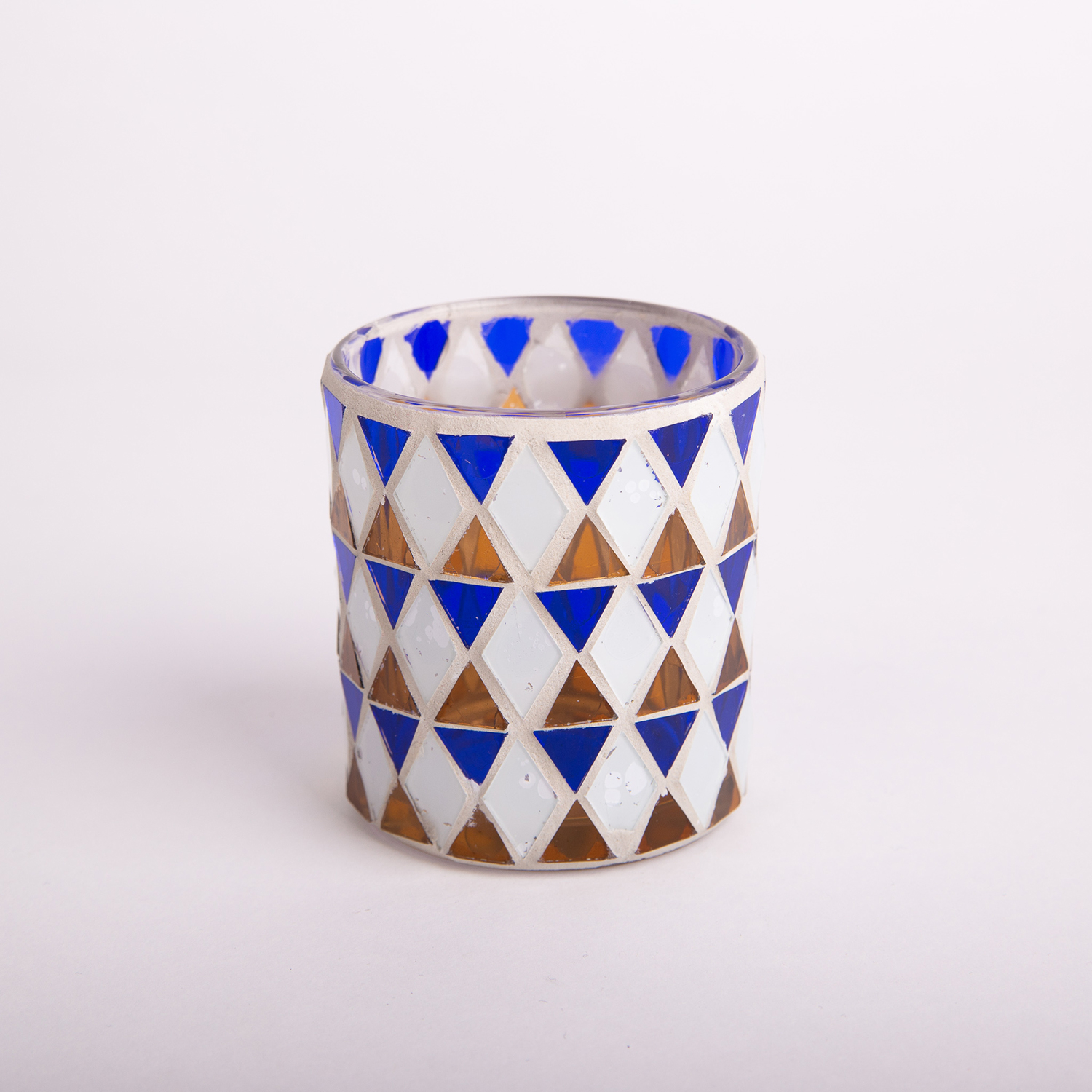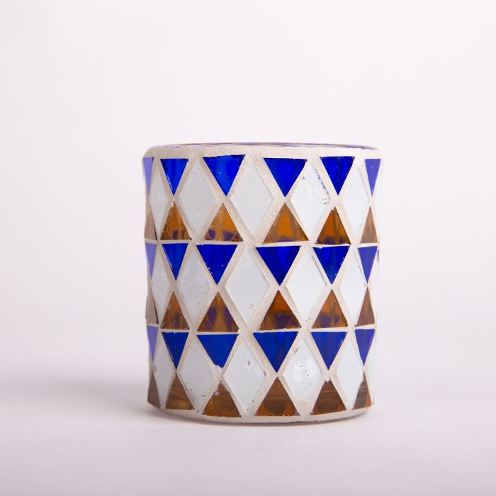 Mosaik Kerzenglas SAMIRA, blau-weiß, 8cm, Ø7cm