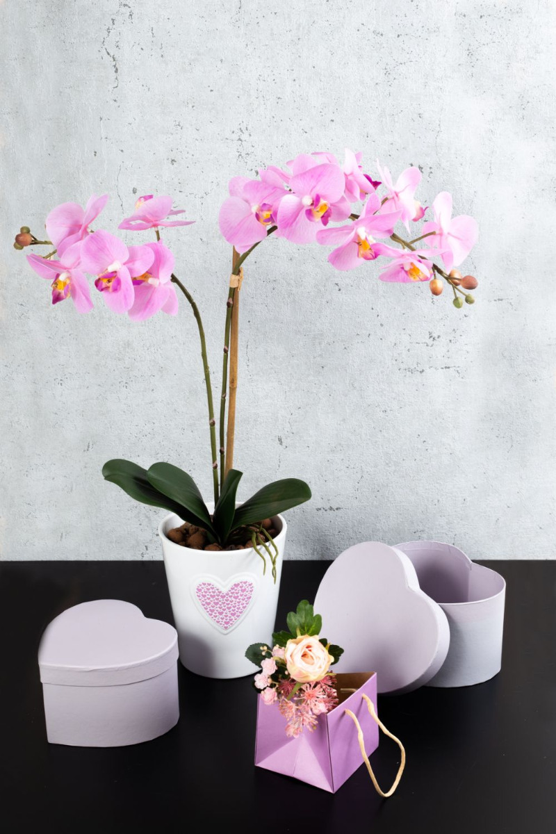 Gestaltungstipp: In dem Blumentopf mit Blähton findet die Orchidee besten Halt, legen Sie die Wurzeln über den Rand, das trägt dazu bei das sie von einer echten Blume kaum zu unterscheiden ist. Die Stiele lassen sich nach Ihren Wünschen biegen.