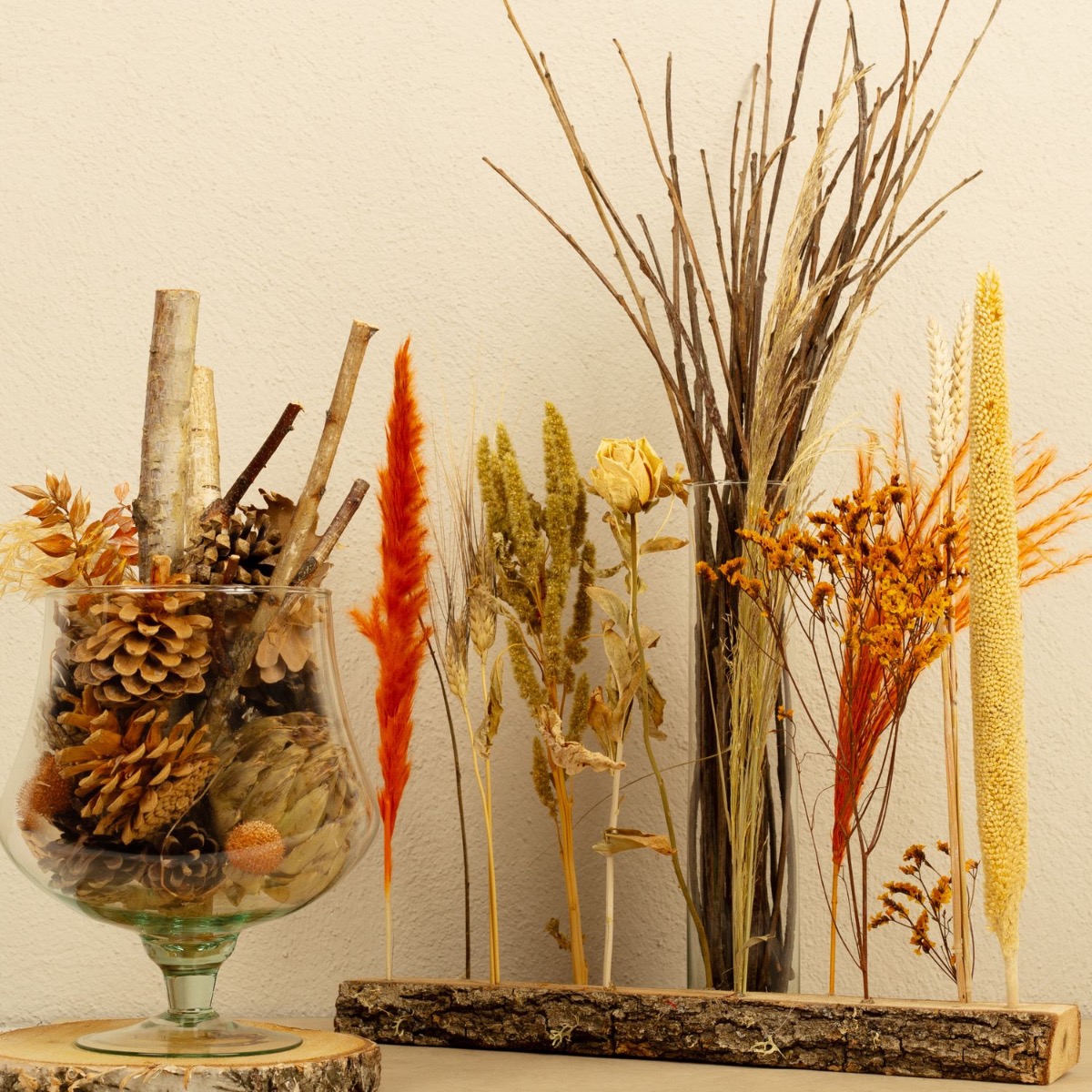 Der Herbst leuchtet! Heute zeigen wir endlich mal einen Look aus unserem vielseitigen Angebot an Naturdeko. Trockenblumen, Baumfrüchte und Zweige eignen sich wirklich super, um den Herbst in das Zuhause zu holen. Das Trockenblumengesteck mit seinen leuchtend orangefarbenen Elementen ist einfach schön anzusehen und bringt Farbe in die manchmal graue Jahreszeit. Shop the Look!
