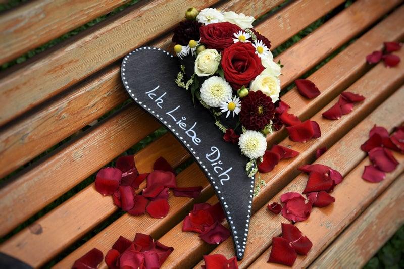 - Farbe schwarz, in Herz Form, Steckschaumbasis auf Bioline Naturholz-Unterlage, als Gestaltungsspielraum für weitere kreative Elemente wurde bewusst nur ein Teil der Holzbasis mit Steckschaum ausgestattet