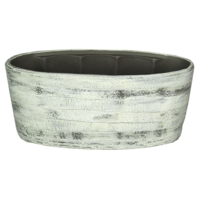Orchideenschale aus Keramik ADELPHOS, oval, Linien, weiß-dunkelgrau, 33x15x15cm