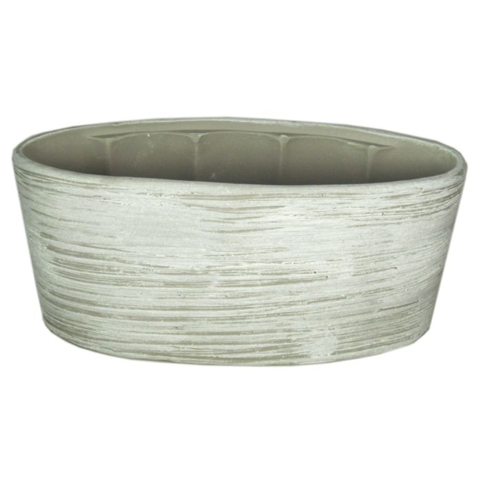 Orchideenschale aus Keramik ADELPHOS, oval, Rillen, weiß-hellgrau, 33x15x15cm