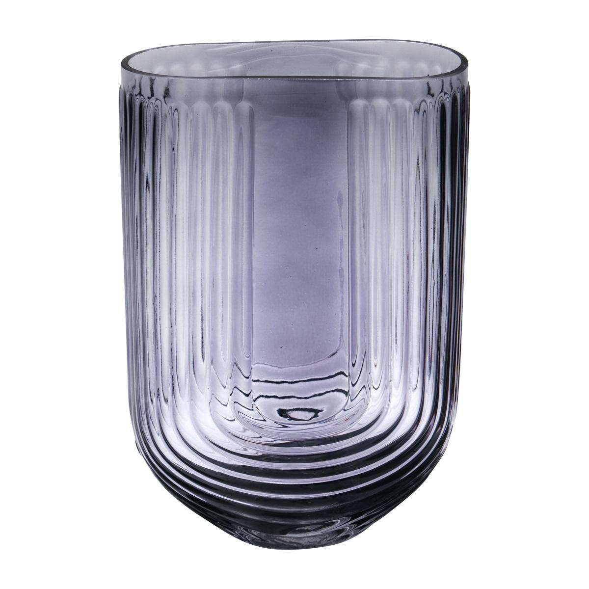 Ovale Glas Dekovase NICODEMO mit Rillen, grau-klar, 16x8x24cm