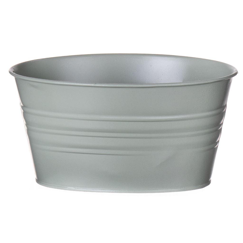 Ovaler Pflanztopf MICOLATO mit Rillen, Zink, jadegrün, 19x13,5x10cm