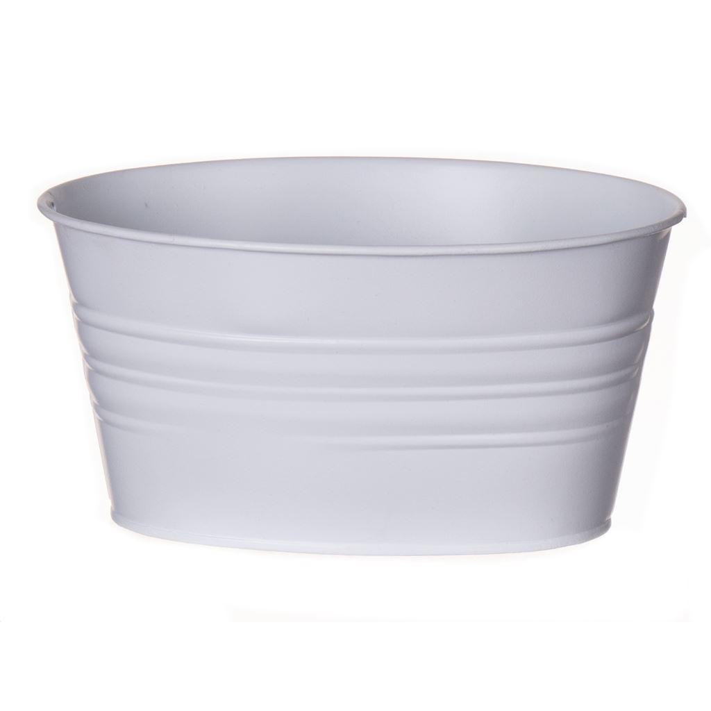 Ovaler Pflanztopf MICOLATO mit Rillen, Zink, weiß, 19x13,5x10cm