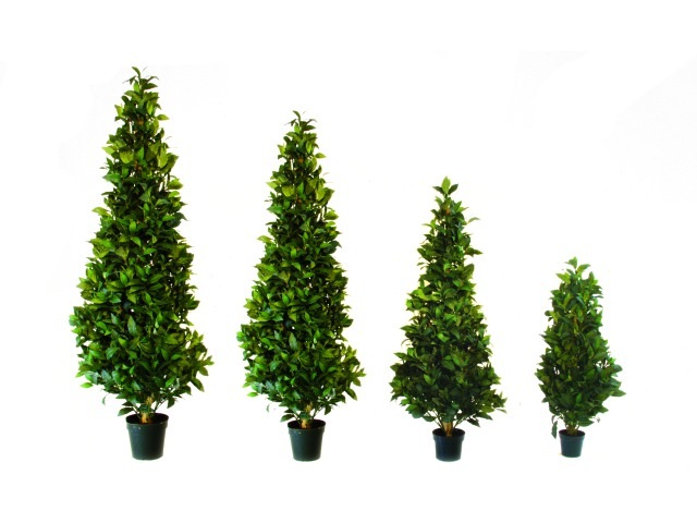 Produkte: künstlicher Lorbeerkegelbaum 840 Blätter 120 cm, Kunst Lorbeerkegelbaum 1080 Blätter 150 cm, Lorbeerkegelbaum im Zementtopf 2100 Blätter 180 cm