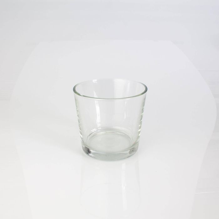Kleiner Glas Übertopf ALENA von INNA Glas in Farbe klar. Mit seiner Größe (Höhe: 10,5 cm, Ø: 11,5 cm) ist das Glas auch ideal für große Teelichter.