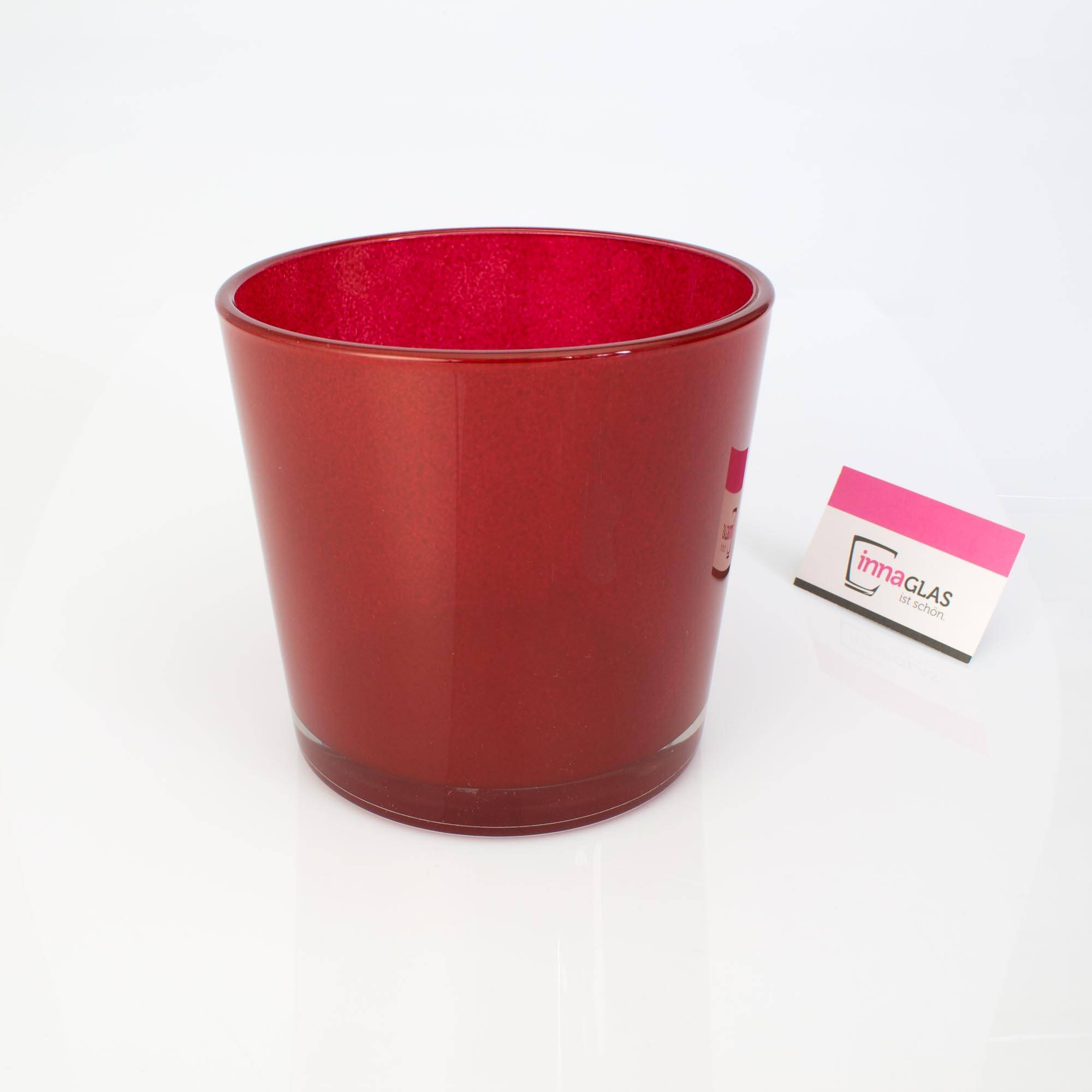 Glas Übertopf ALENA von INNA Glas in Farbe rot. Der elegante Blumentopf mit einem Durchmesser von 17 cm und der Höhe von 16 cm setzt jede exotische Grünpflanze gekonnt in Szene.