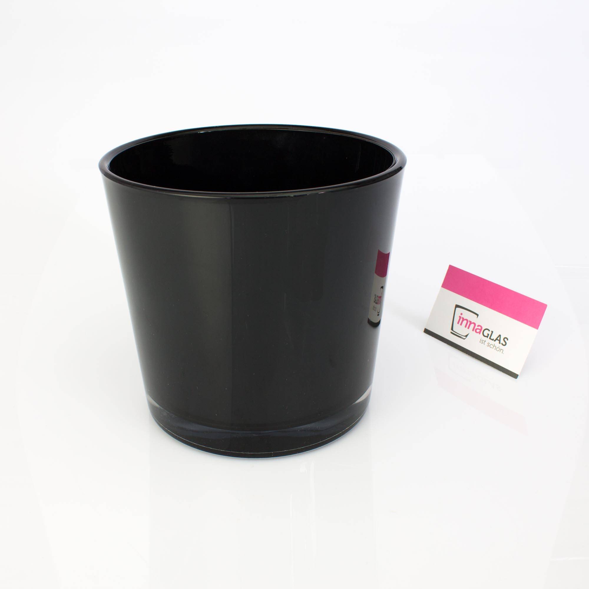 Glas Übertopf ALENA von INNA Glas in Farbe schwarz. Der elegante Blumentopf mit seinem Durchmesser von 17 cm und der Höhe von 16 cm setzt jede exotische Grünpflanze gekonnt in Szene.
