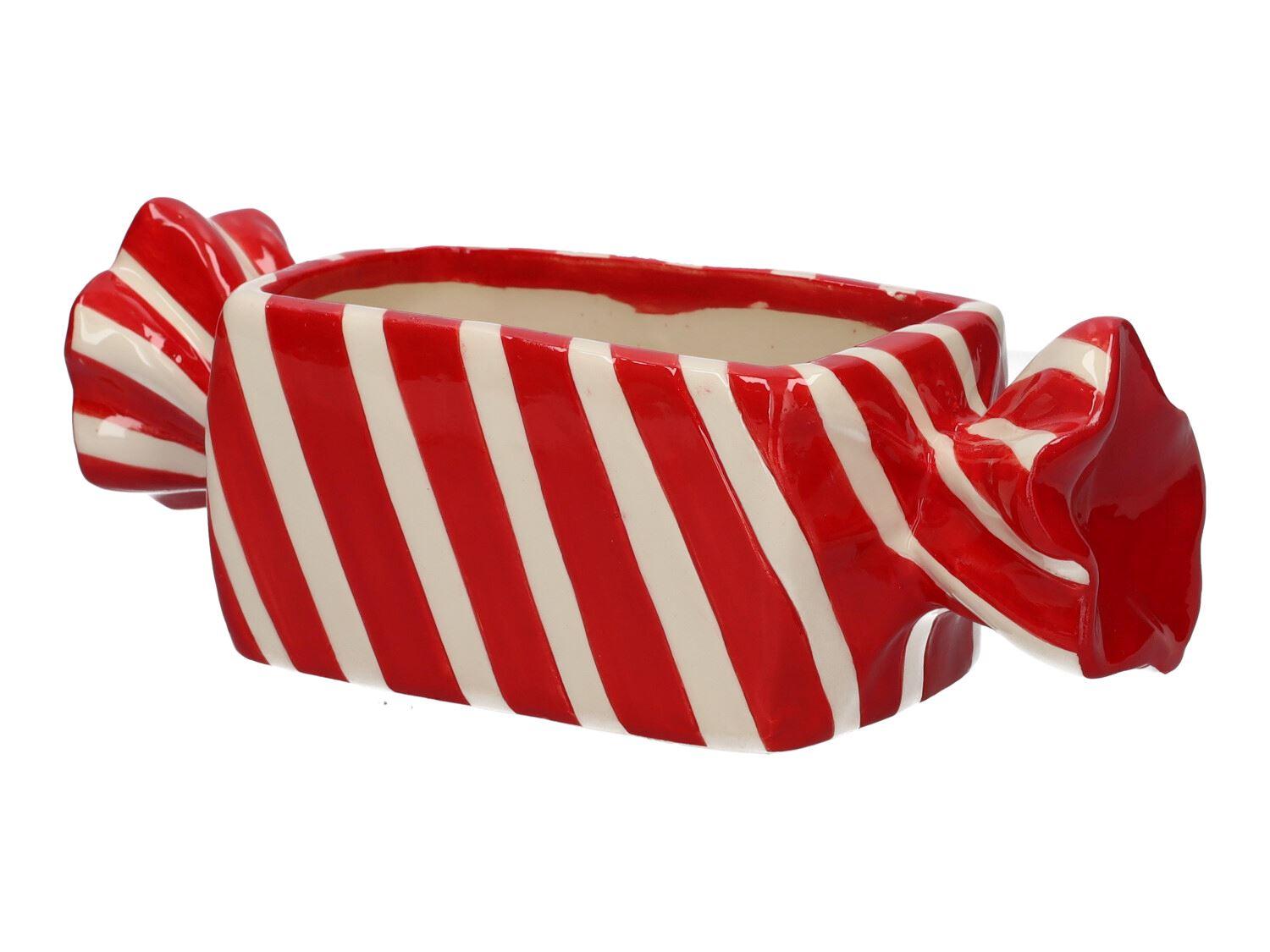 Pflanztopf Bonbon AMIEL aus Keramik, mit schrägen Linien, rot-weiß, 22,2x8,9x7,1cm