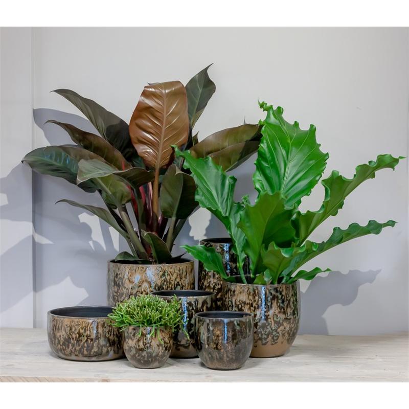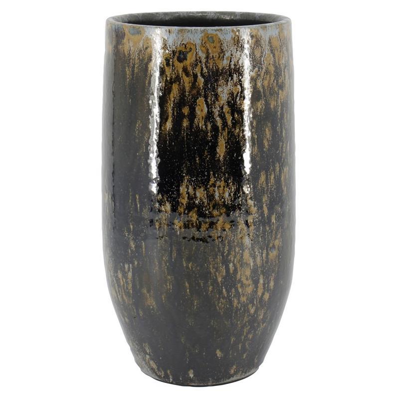 Pflanzvase ELIEL aus Keramik, gesprenkelt, braun-blau, 35cm, Ø18cm