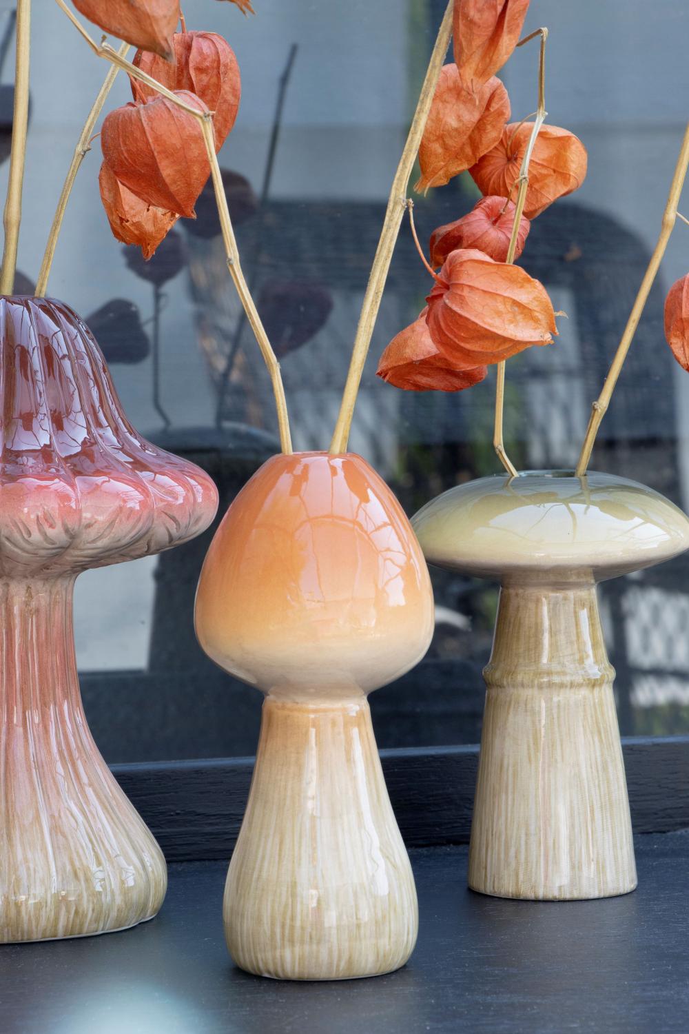 Pilzvase aus Keramik RADOMILA, orange-beige, 16cm, Ø7,5cm
