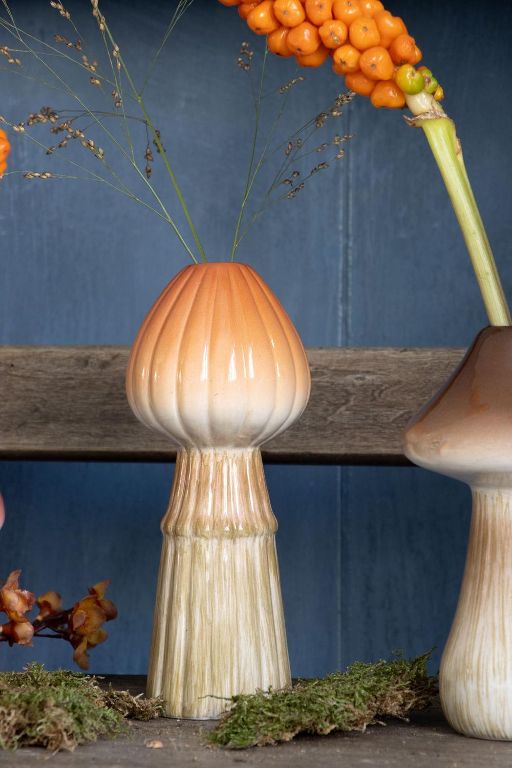 Pilzvase aus Keramik RADOMILA, Rillen, orange-beige, 18cm, Ø7,4cm