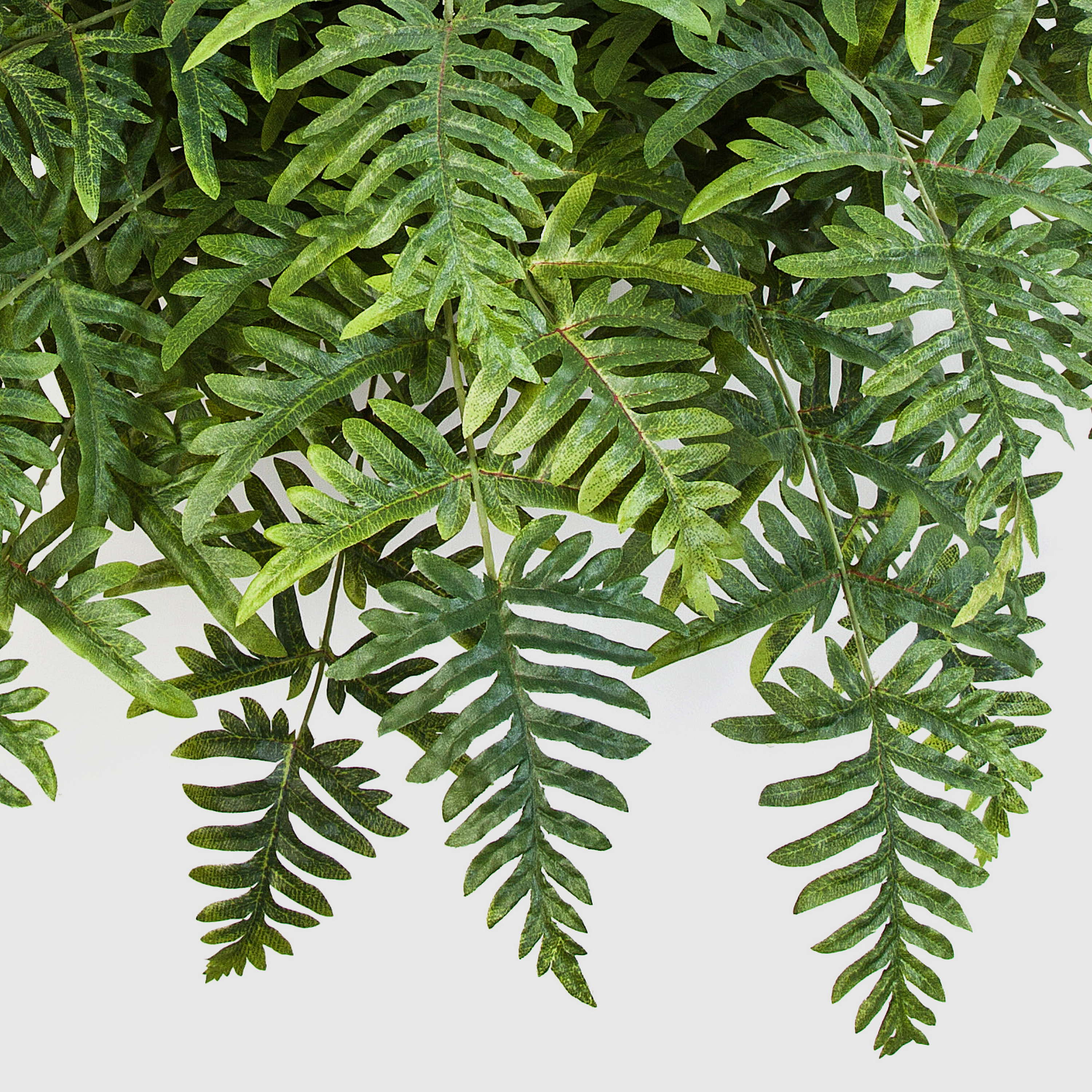Heimischer Deko Frauenfarn RENE mit ca. 45 Blattwedel für ein dichtes Erscheinungsbild. Der künstliche Weibliche Wurm-Farn ist ca. 75 cm hoch und hat einen Durchmesser von ca. 90 cm eine ideale Größe für z.B. die Bepflanzung des Treppenhauses in Hängeampeln oder in hohen Pflanztöpfen.