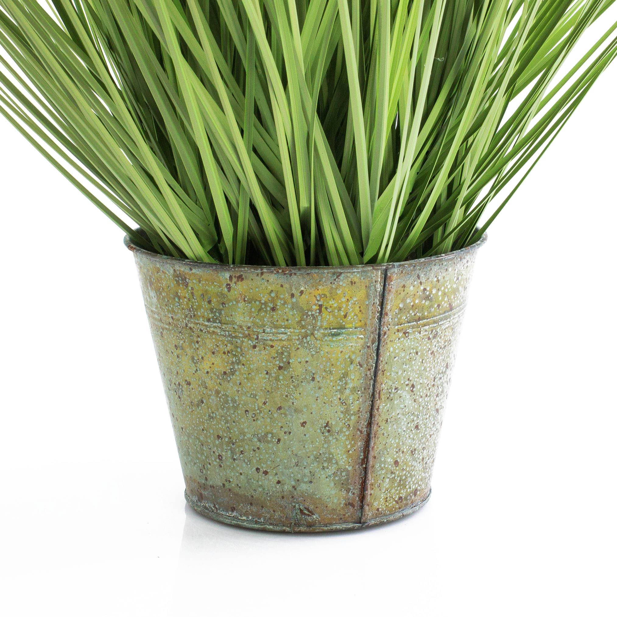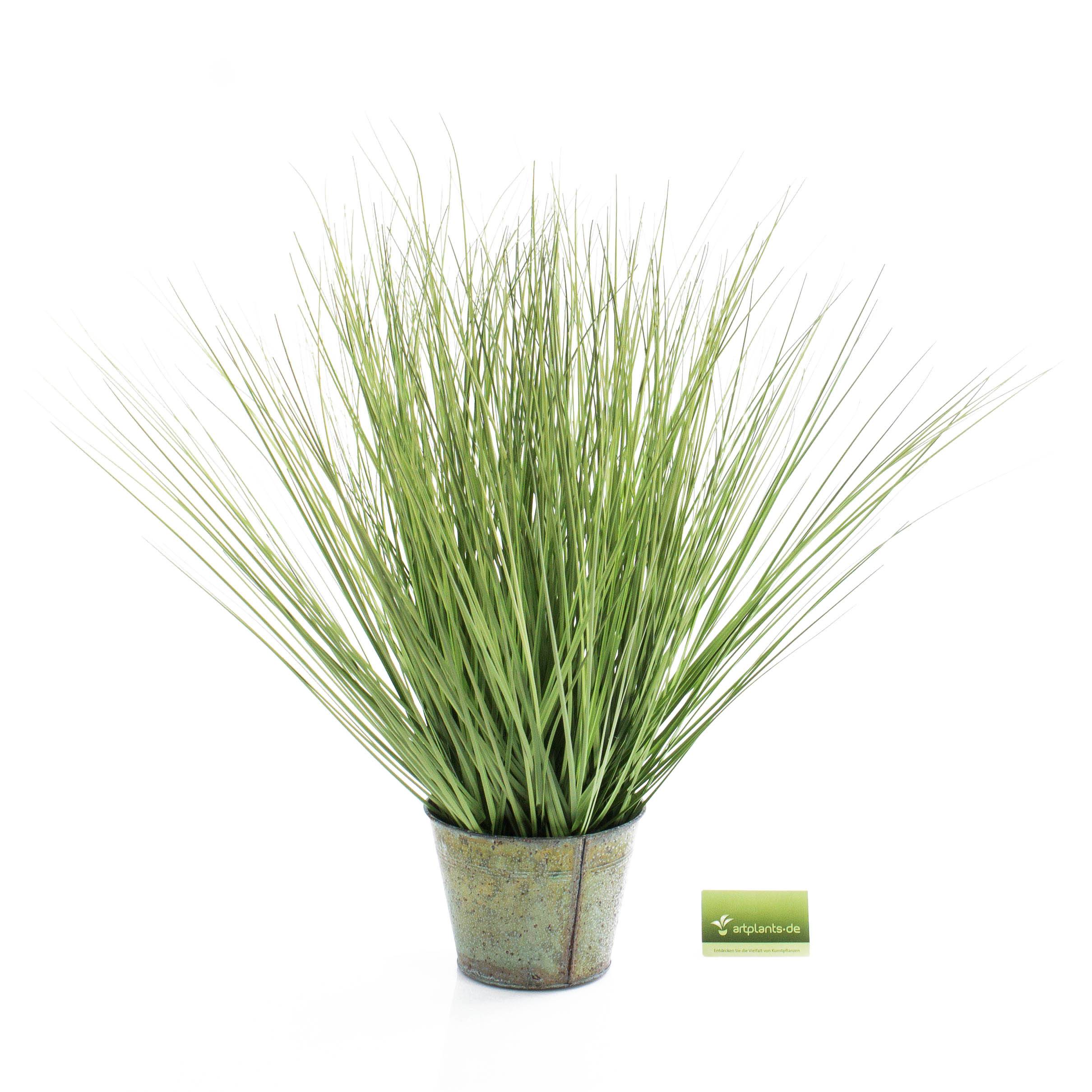 Kunst Gras in dichter Grashalmbestückung im Metalltopf. Das Fuchsschwanzgras hat eine Länge von ca. 65 cm.