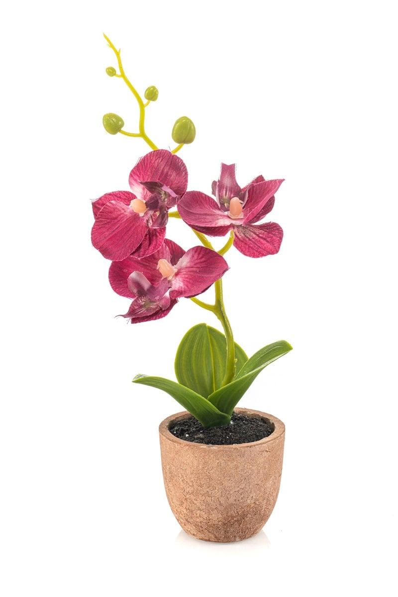 Plastik Orchidee Phalaenopsis LEONISA im Terrakottatopf, fuchsia, 20cm