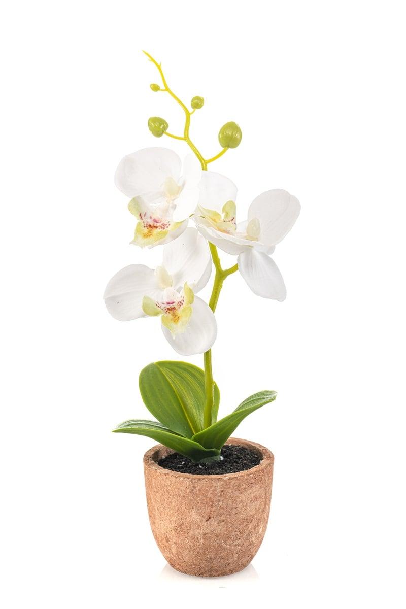 Plastik Orchidee Phalaenopsis LEONISA im Terrakottatopf, weiß, 20cm