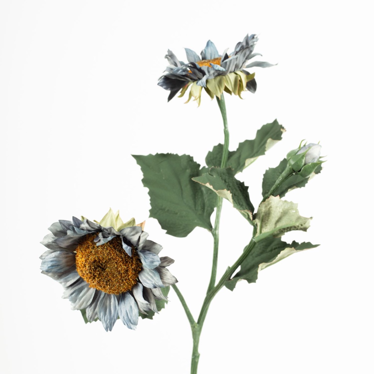 Plastik Zweig Sonnenblume HAITALA, Eco Collection, grau-blau, 65cm, Ø9-10cm