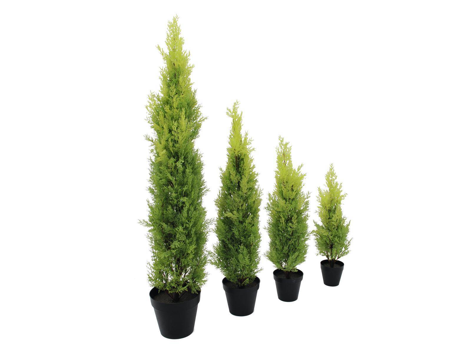 Künstliche Zypresse im Dekotopf. Die kleine Zypresse hat getopft eine Höhe von insgesamt ca. 90 cm.