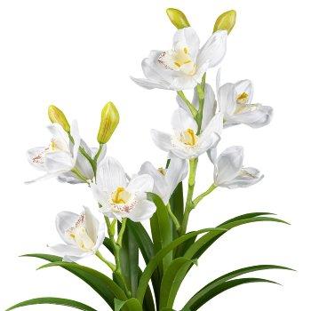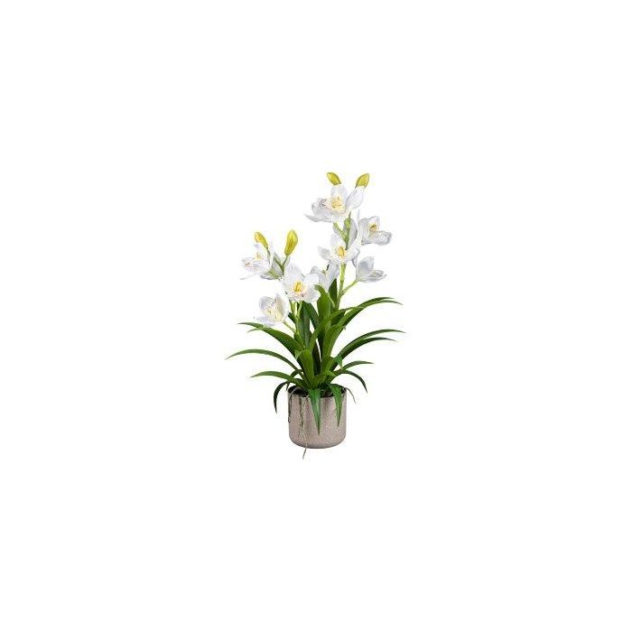 Plastikblume Cymbidium Orchidee CANFOL, Melamin-Übertopf, Wurzeln, weiß, 60cm