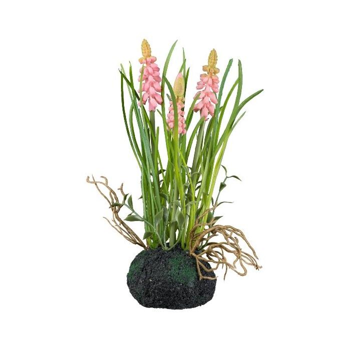 Plastikblume Traubenhyazinthe HUNMY im Erdball, Wurzeln, rosa, 22cm