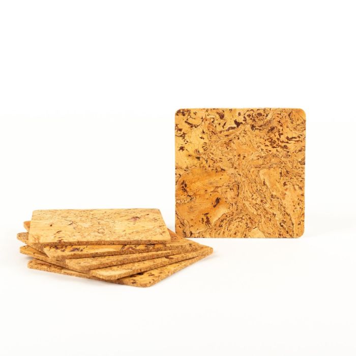 Quadratischer Glasuntersetzer Kork BRIANO, 6 Stück, natur, 9x9cm, Stärke 0,3cm