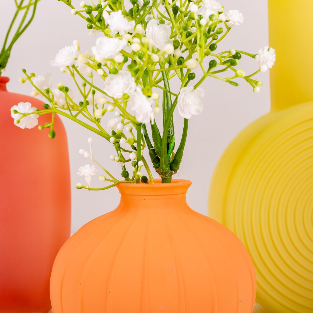 Gestaltungstipp: Die Vasen in gleichmäßigen Abstand aufstellen. Das Schleierkraut mit einem Seitenschneider vorher in die gewünschte Länge kürzen. Danach die Vasen damit bestücken und zurechtbiegen.