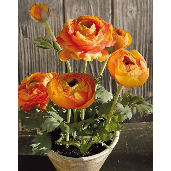 Ranunkel künstlich JOSEPHINA im Tontopf, orange, 30cm, Ø4-8cm