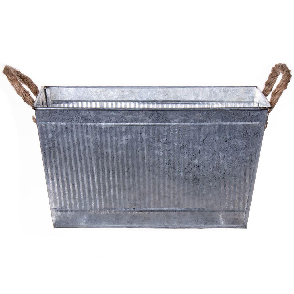 Rechteckiger Blumenkasten BIMETO mit Griffen, Rillen, Zink, silber, 29x19x15cm