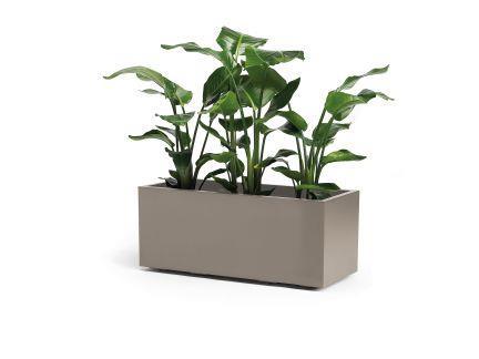 Rechteckiger Blumenkasten NASTASJA aus recyceltem Kunststoff, mit Wasserspeicher, Bodenrollen, taupe, 99,5x39,5x38cm, 102L