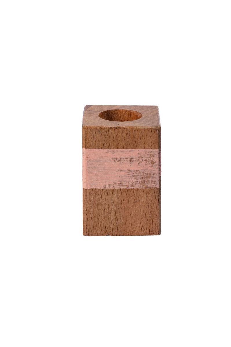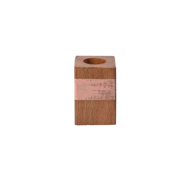 Rechteckiger Holz Kerzenständer KARLINA für Stabkerzen bis ca. Ø2,5cm, natur-lachs, 4x4x6cm