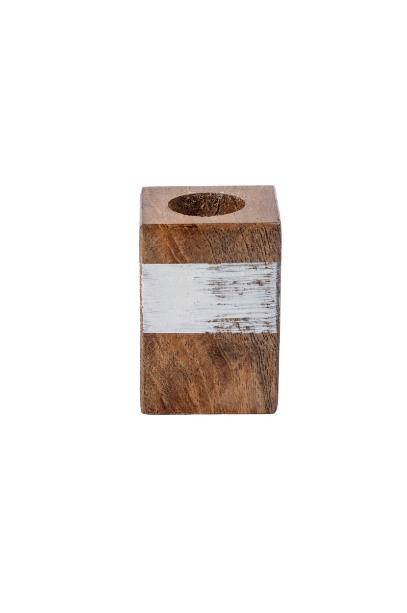 Rechteckiger Holz Kerzenständer KARLINA für Stabkerzen bis ca. Ø2,5cm, natur-weiß, 4x4x6cm
