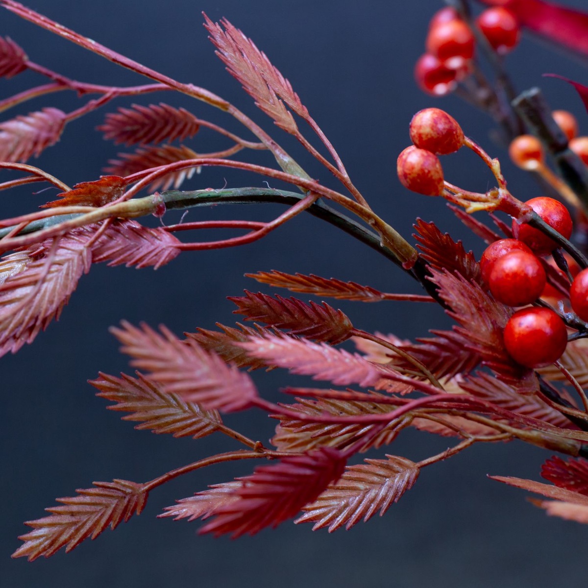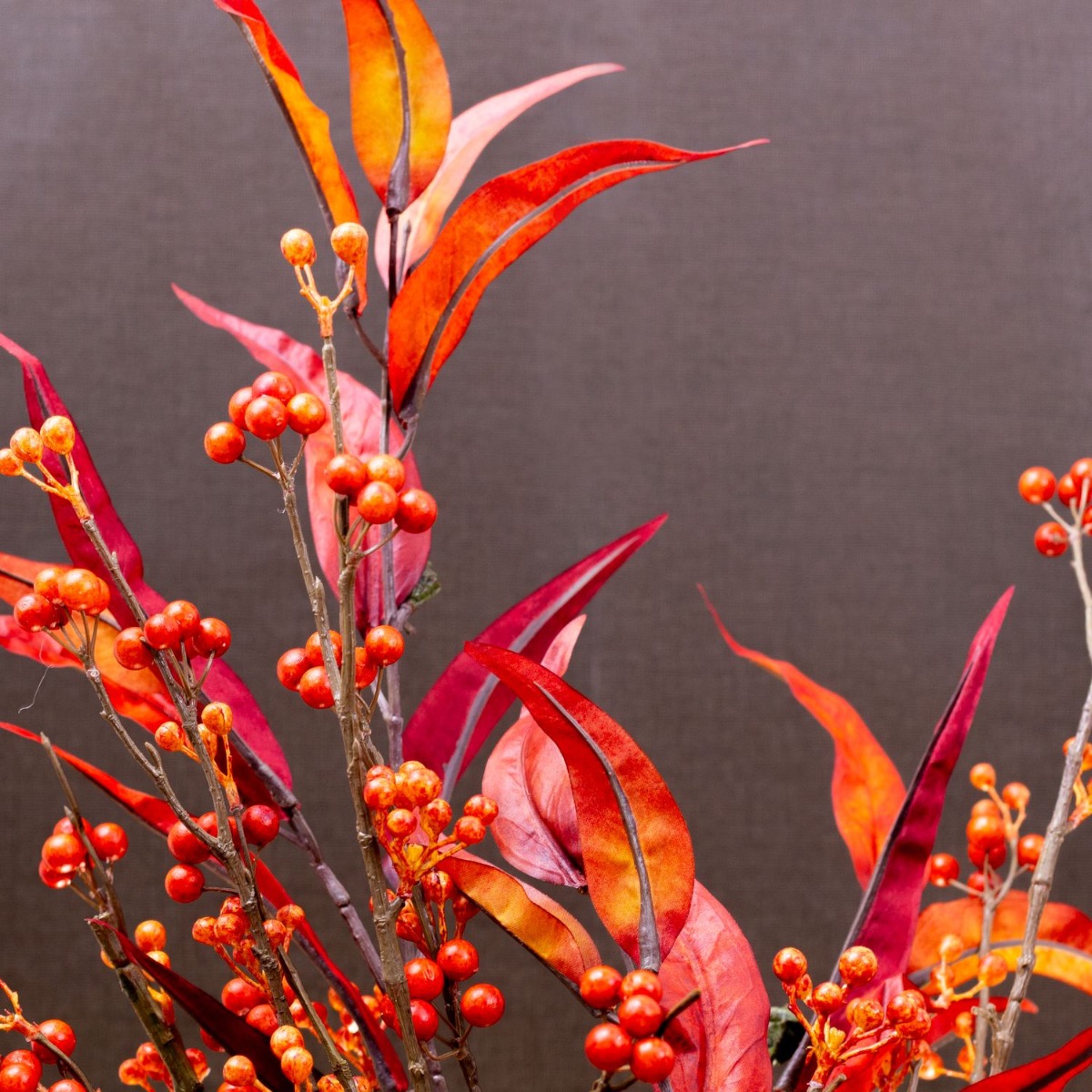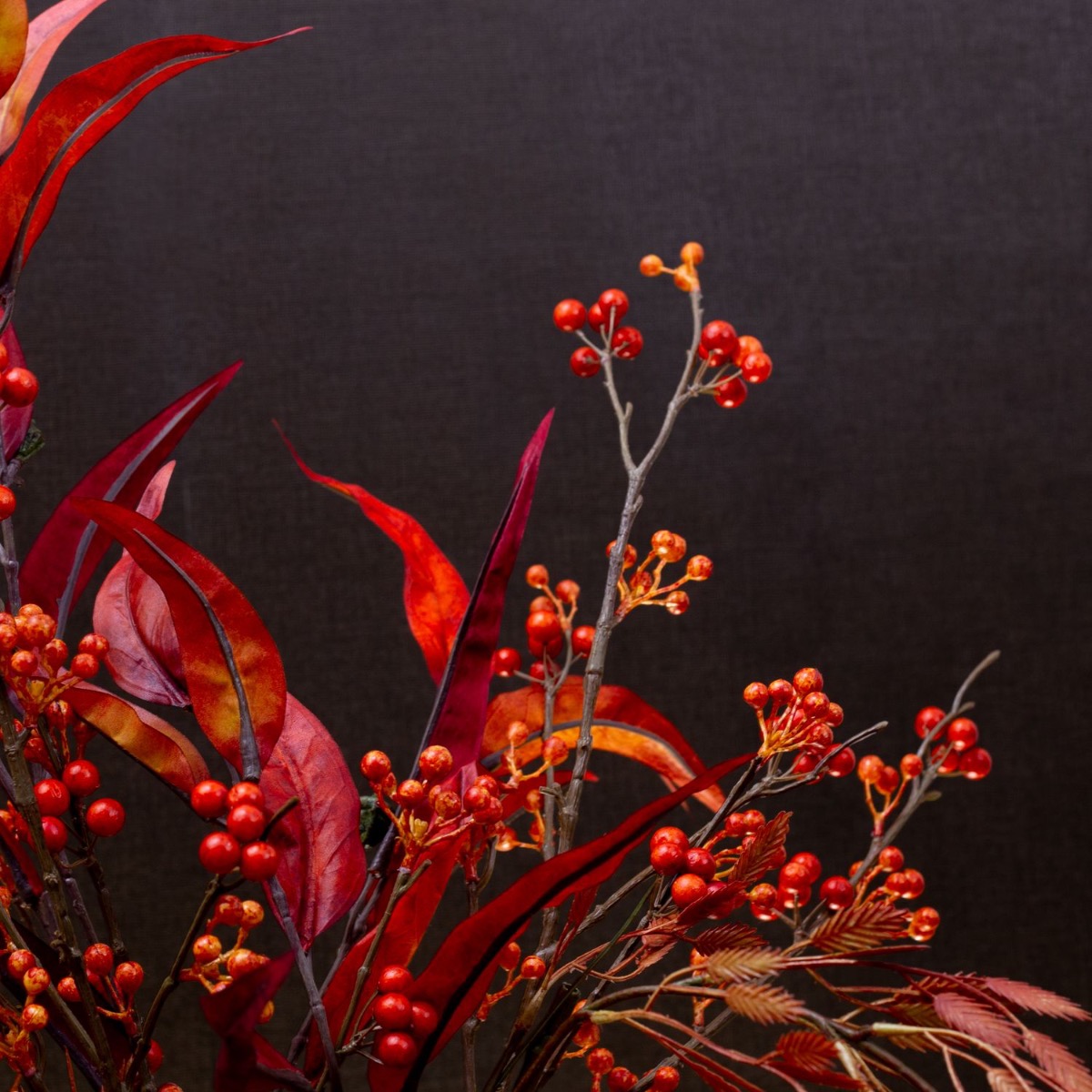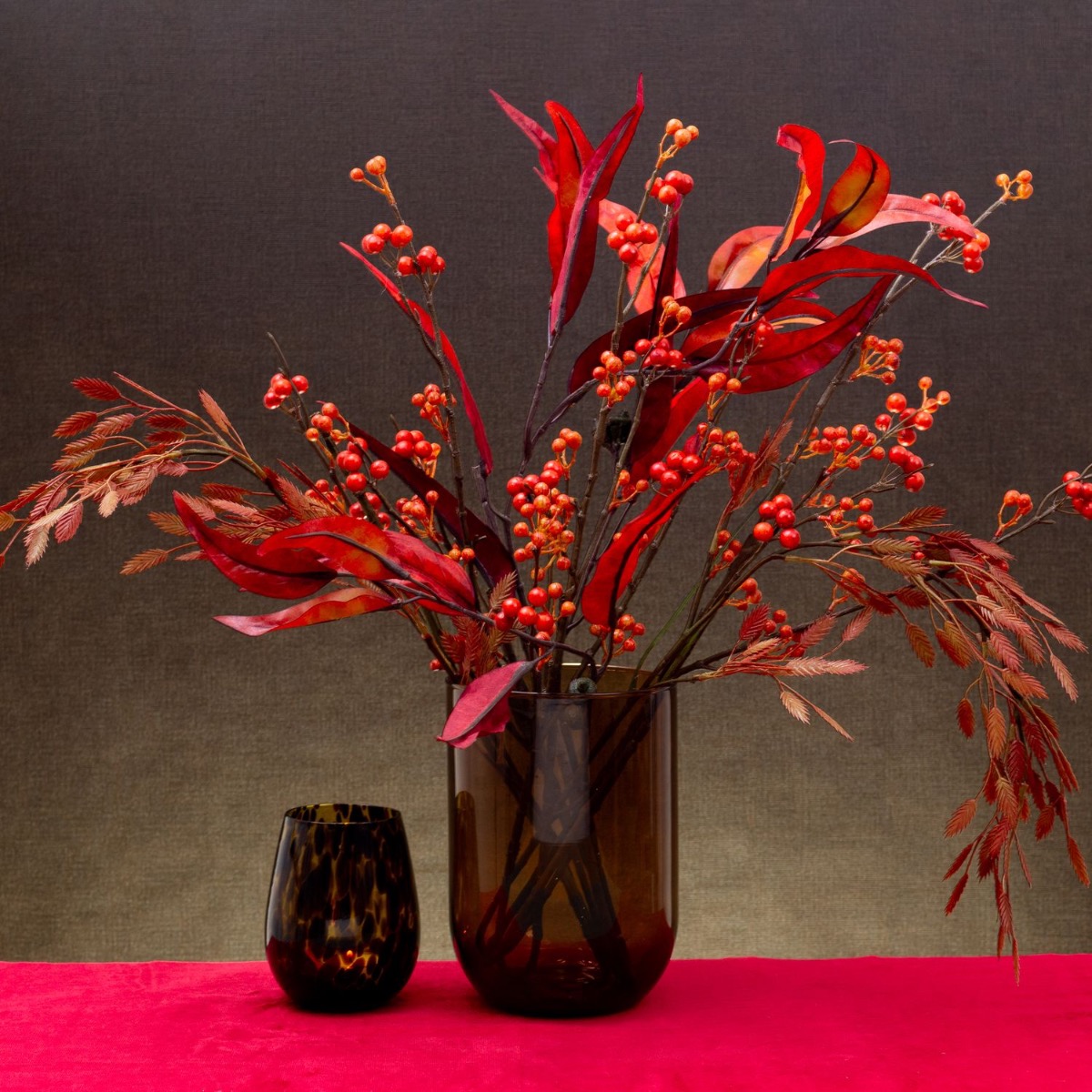 Rot, die Farbe des Feuers und der Liebe! Der Herbst bringt einfach zauberhafte Farben hervor. Besonders fasziniert uns das Rot, das in dieser Jahreszeit zwischen den leblosen Blättern herausleuchtet. Beerenzweige, Eukalyptusblätter und das rötliche Plattährengras wirken wie ein Feuer, das zur trüben und kühlen Jahreszeit angezündet wurde. Das bringt Wärme an jeden Ort! Shop the Look!