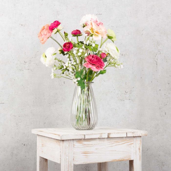 Rosa und Weiß! Eine Farbkombination die Romantik und Harmonie verspricht. Die verschieden großen Ranunkeln, kombiniert mit einem zarten Schleierkraut wirken einfach märchenhaft. Ein Ranunkel Strauß steht für Schönheit und die Einzigartigkeit einer Person. Ein schönes Geschenk für eine außergewöhnliche Person! Shop the Look!
