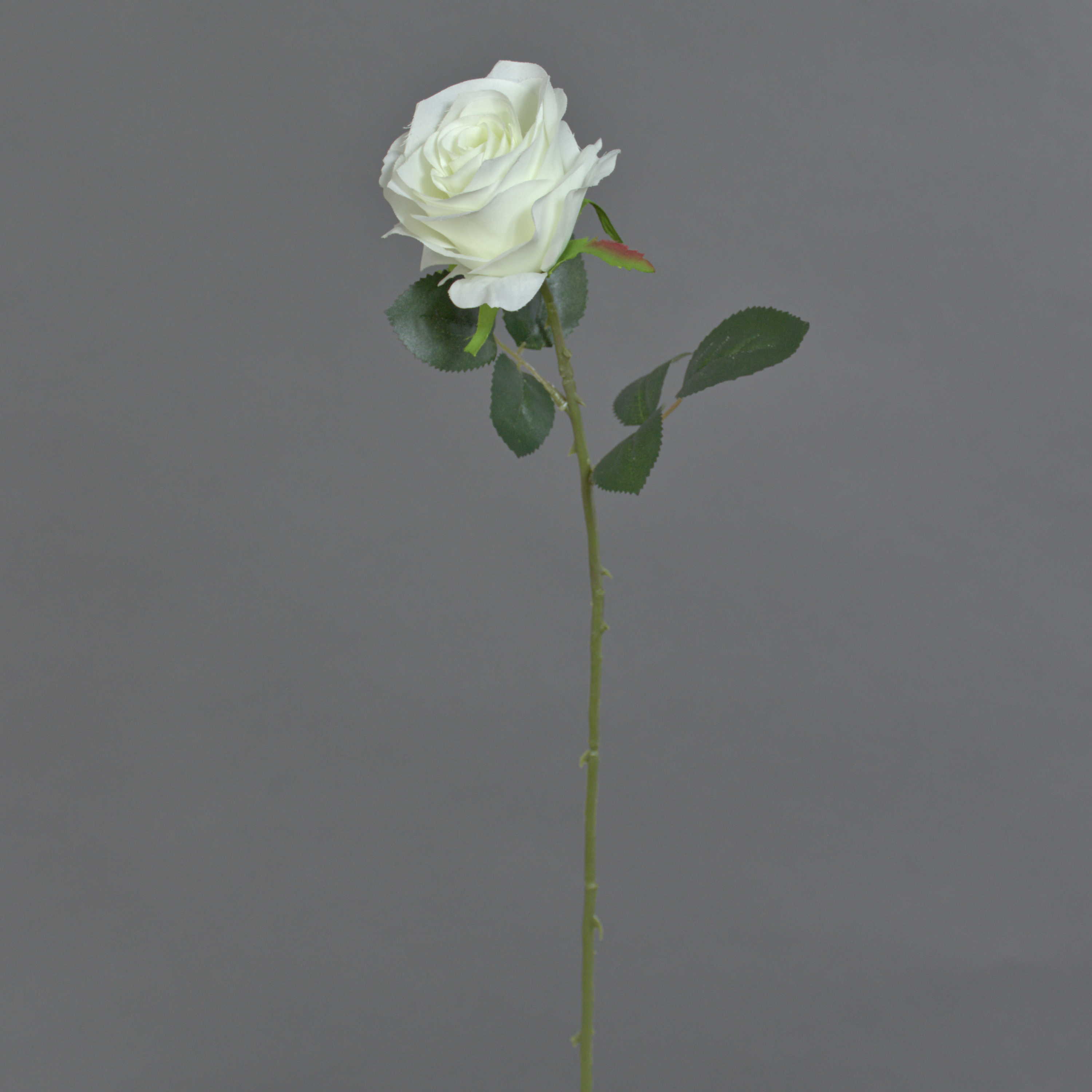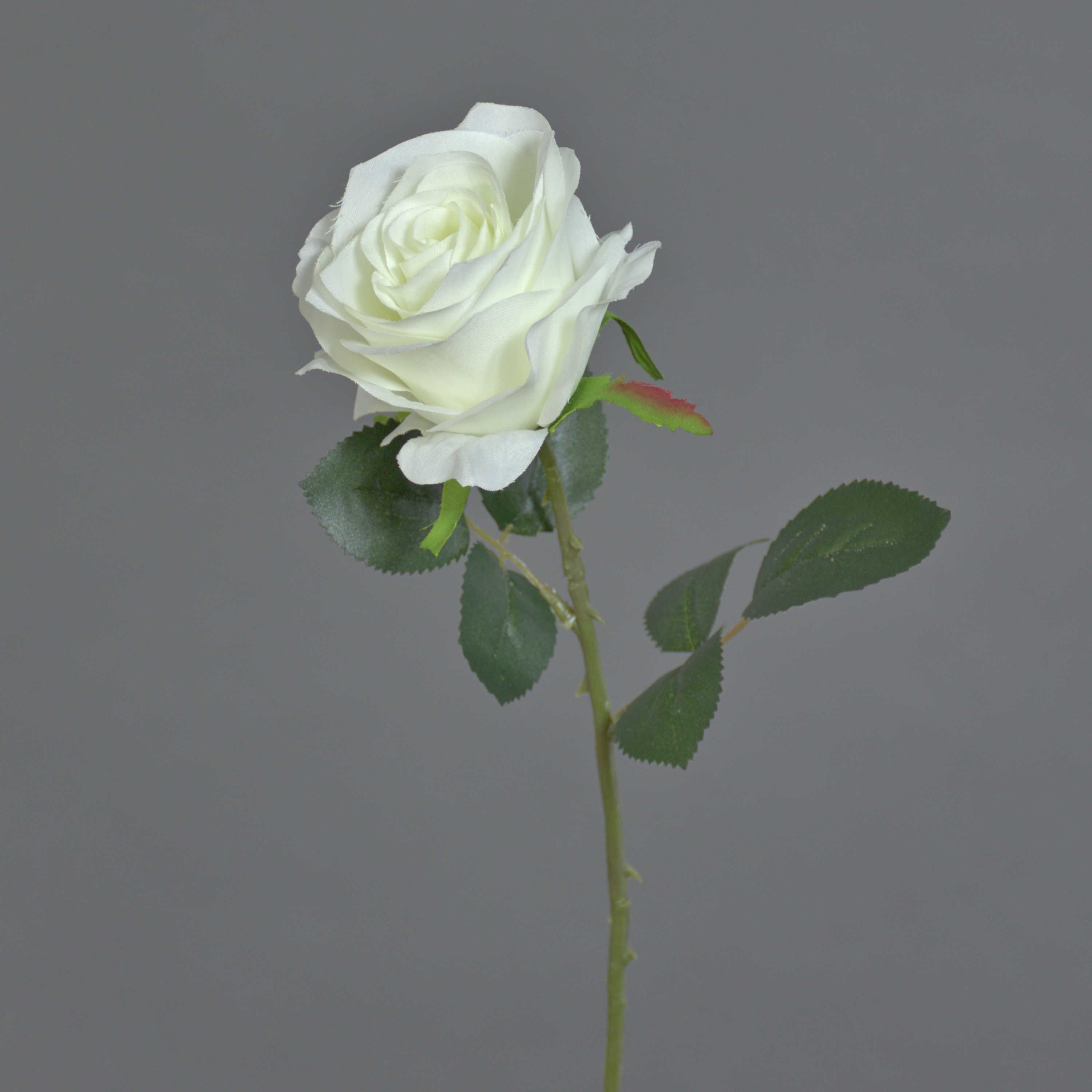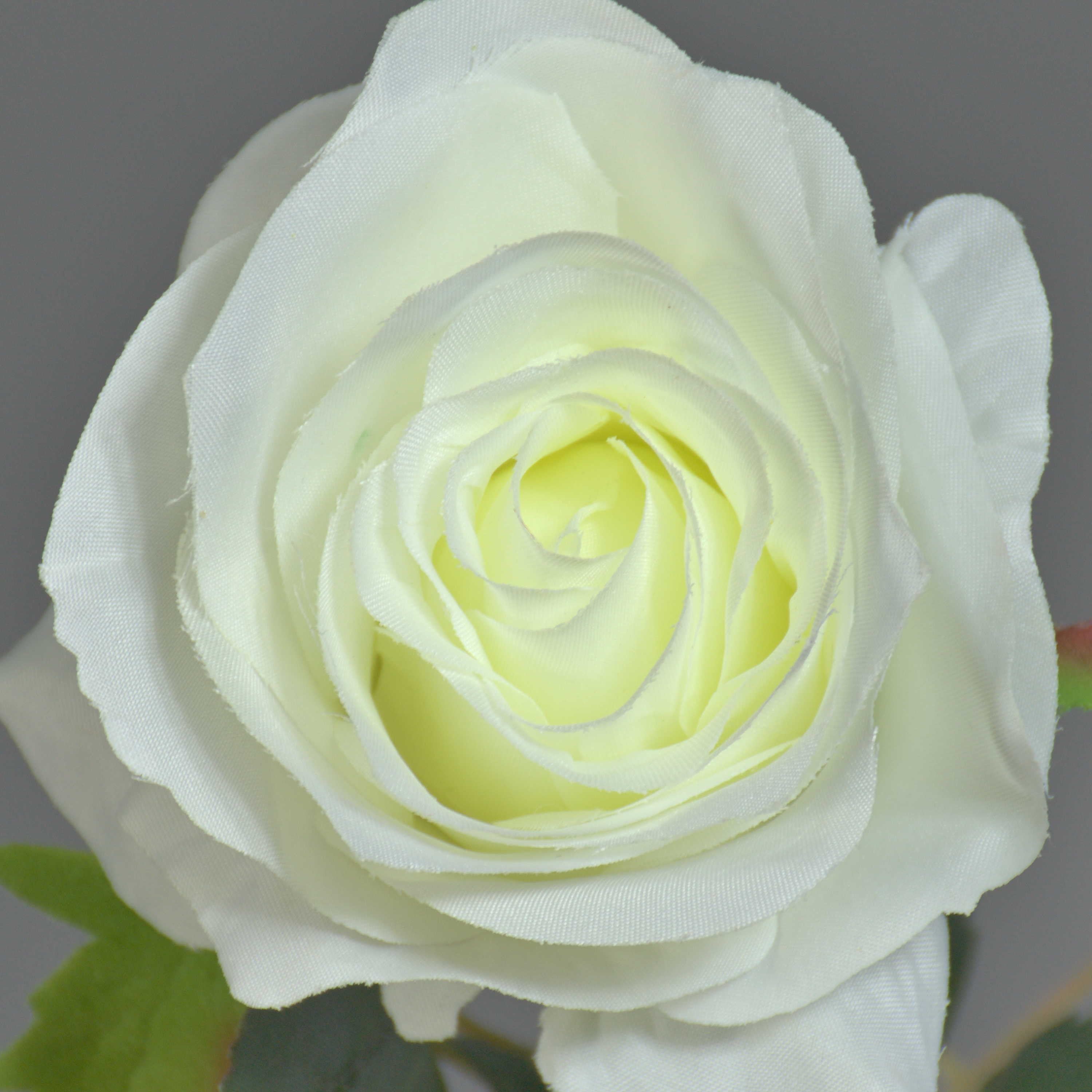 Die schöne Kunstrose SIMONY hat die Blütenfarbe creme und grüne Blätter. Die Kunstrose hat eine Länge von ca. 45 cm und einen Blütendurchemesser von ca. 8 cm.