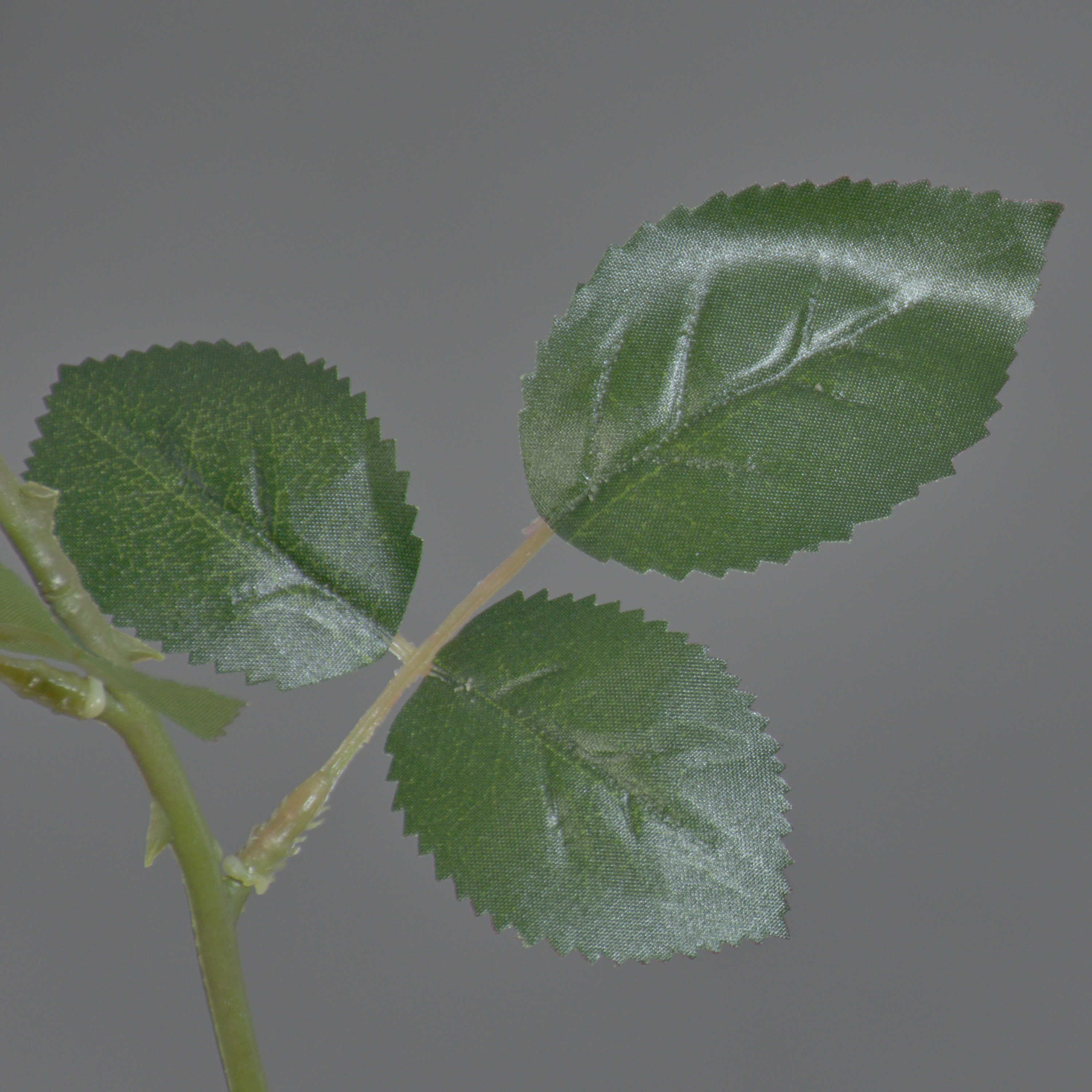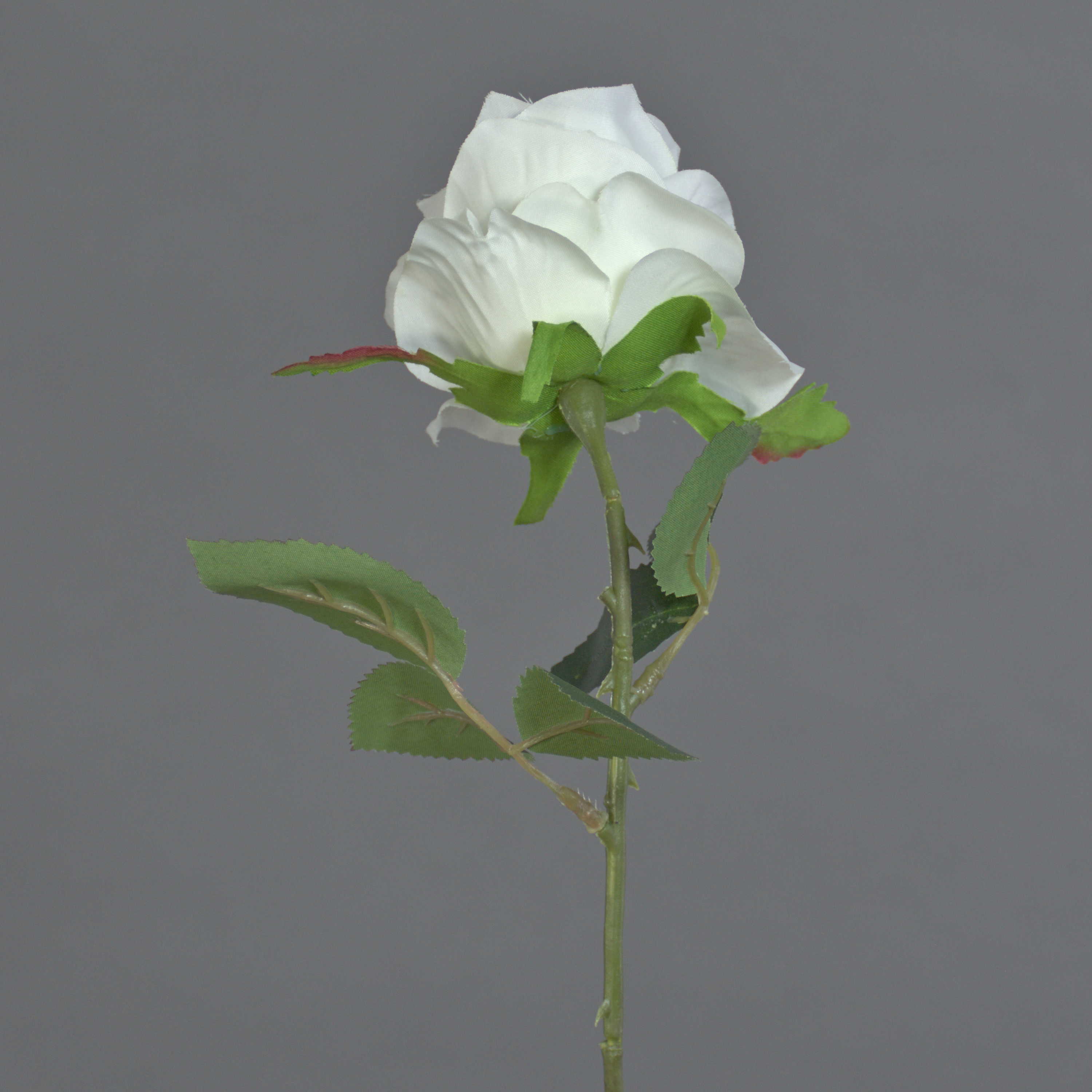 - Hochwertig verarbeitete offene creme-farbige Blüte und viele grüne Blätter, alles aus Textilfaser