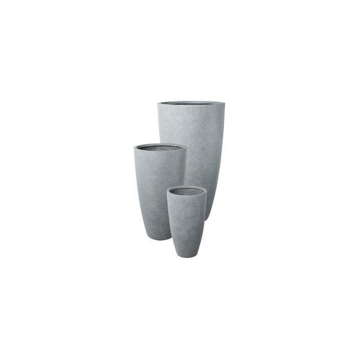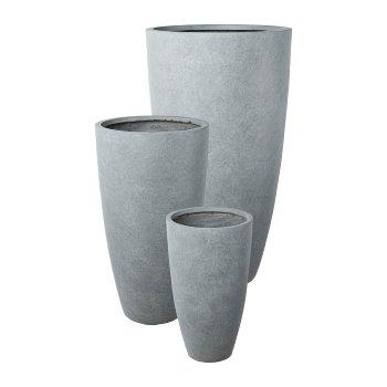 Runde hohe Pflanzvase KIRIMA, 3 Stück, Fiberglas, grau, 34x60cm, 44x80cm, 54x100cm