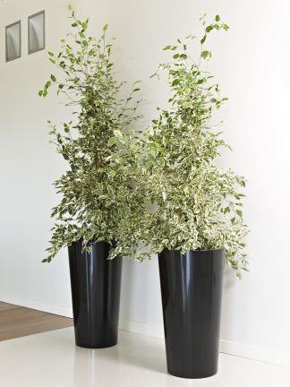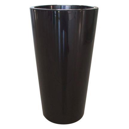 Runde hohe Pflanzvase THERESITA aus Kunststoff, mit Einsatz, Bewässerungsset, schwarz,75cm, Ø40cm
