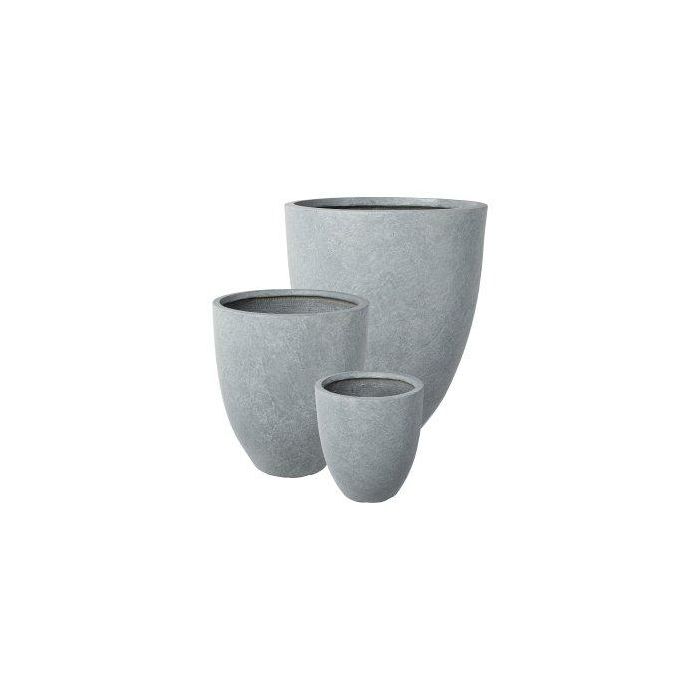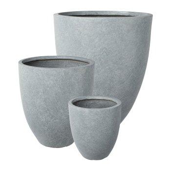 Runder Blumenkübel KIRIMA, 3 Stück, Fiberglas, grau, 34x30cm, 42x36cm, 50x44cm