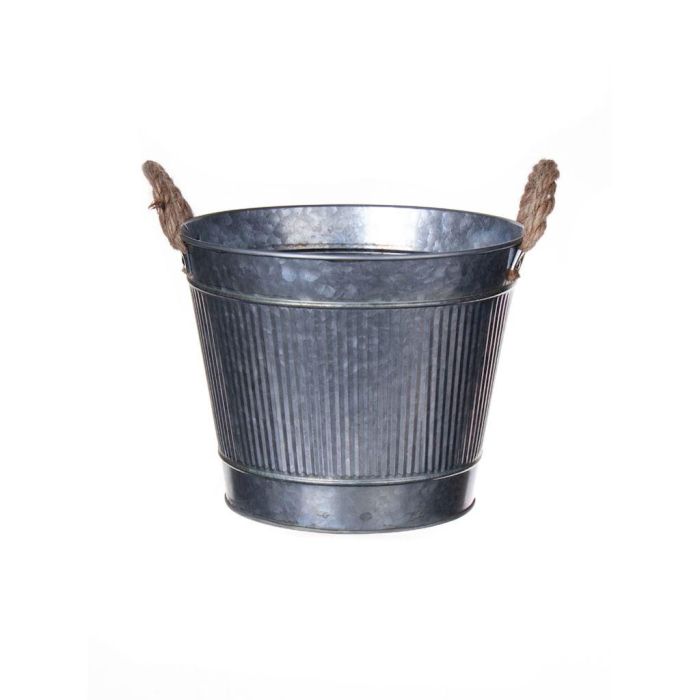Runder Blumentopf BIMETO mit Griffen, Rillen, Zink, silber, 18,5cm, Ø22,5cm